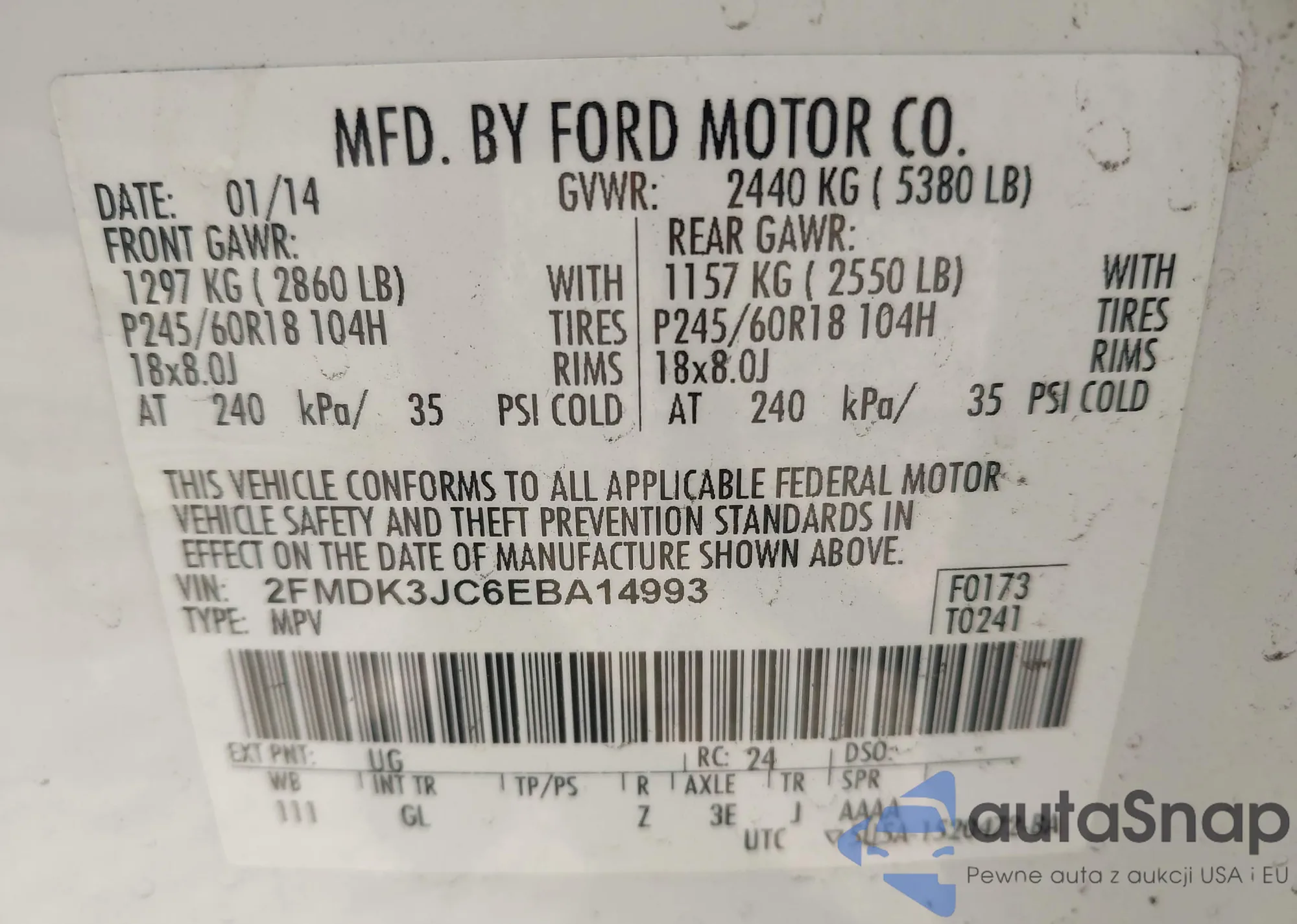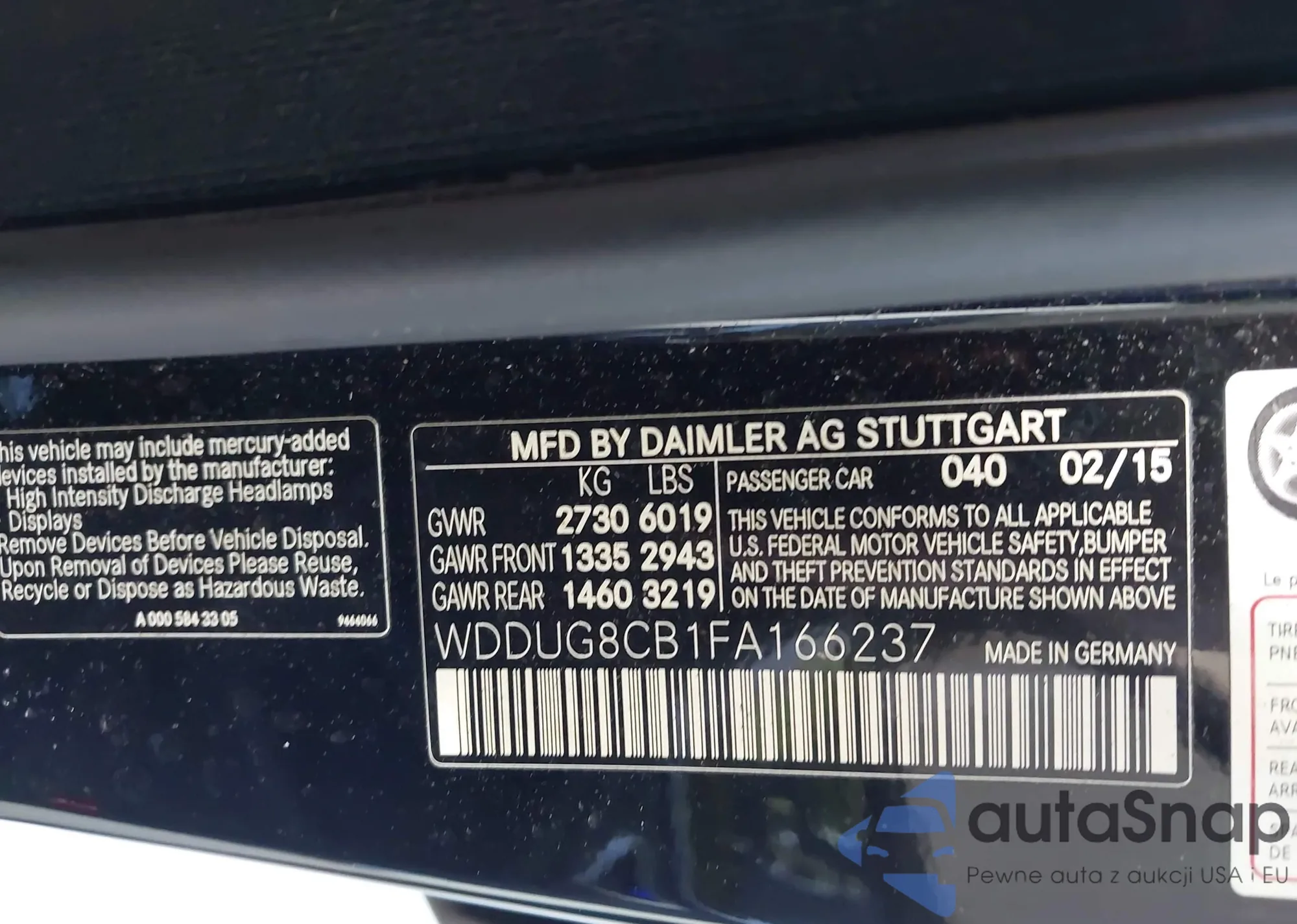 LOT: 43681452 VIN: WDDUG8CB1FA166237