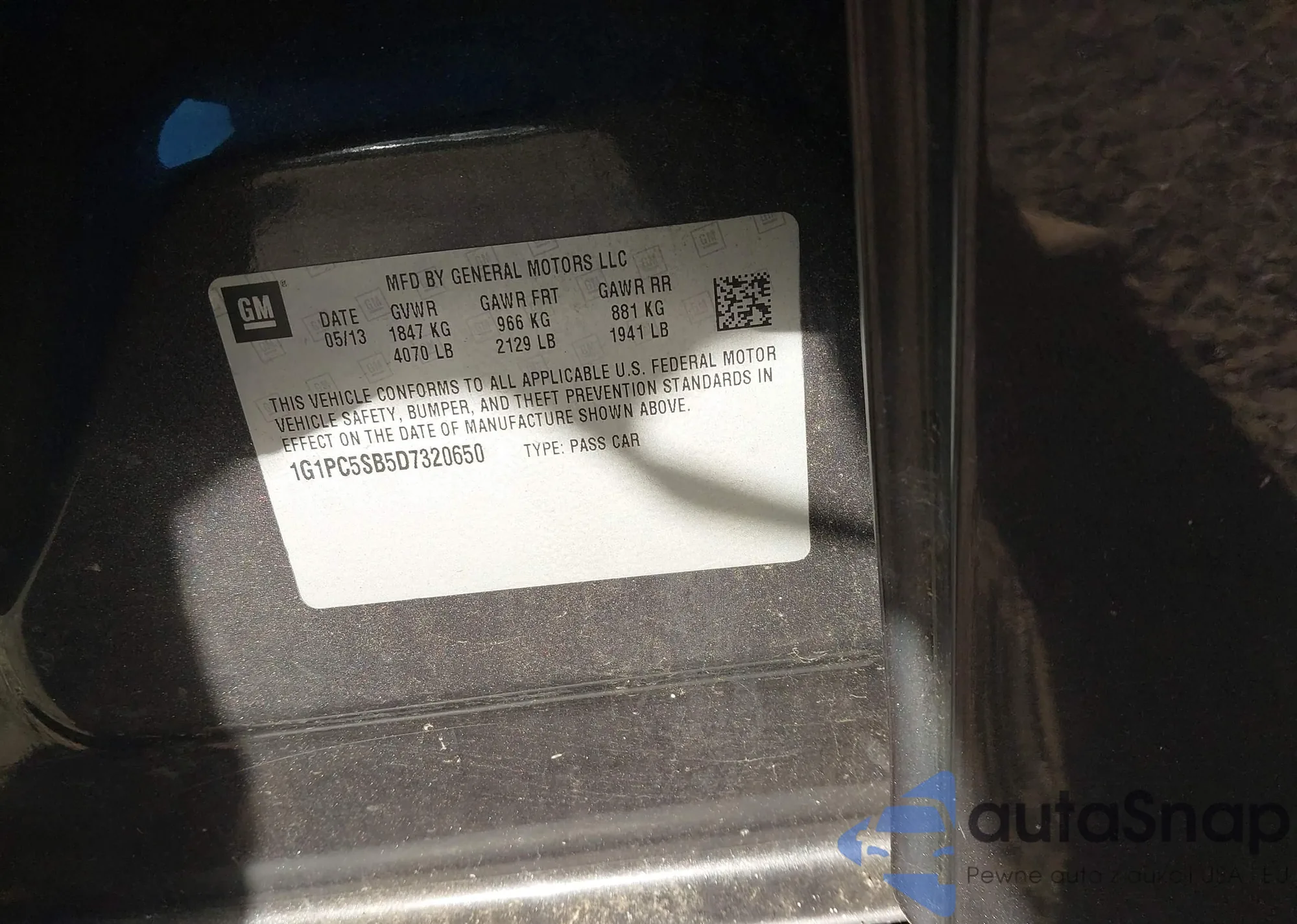 LOT: 43644961 VIN: 1G1PC5SB5D7320650