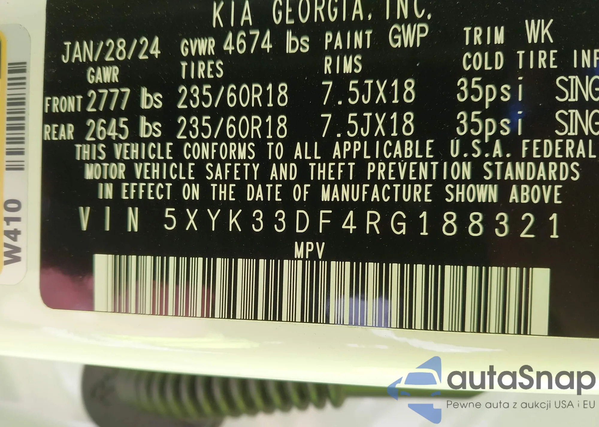 • VIN 5XYK33DF4RG188321