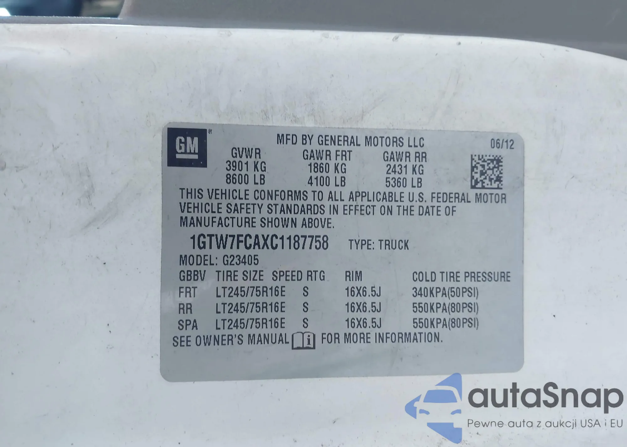 • VIN 1GTW7FCAXC1187758