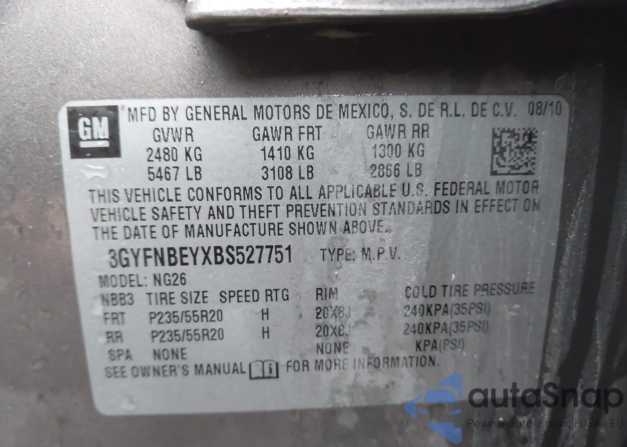 • VIN 3GYFNBEYXBS527751