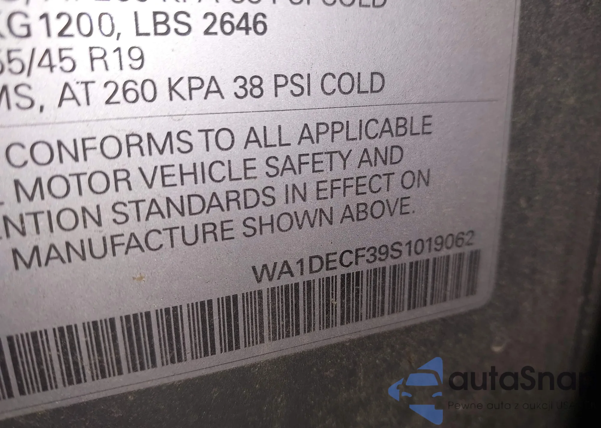LOT: 43433103 VIN: WB523CF00SCS58721