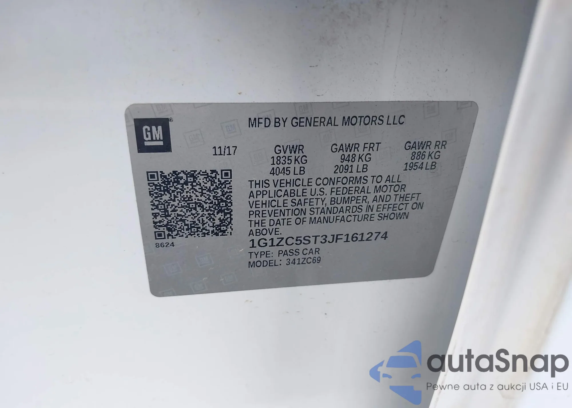 • VIN 1G11C5SL8EF128015
