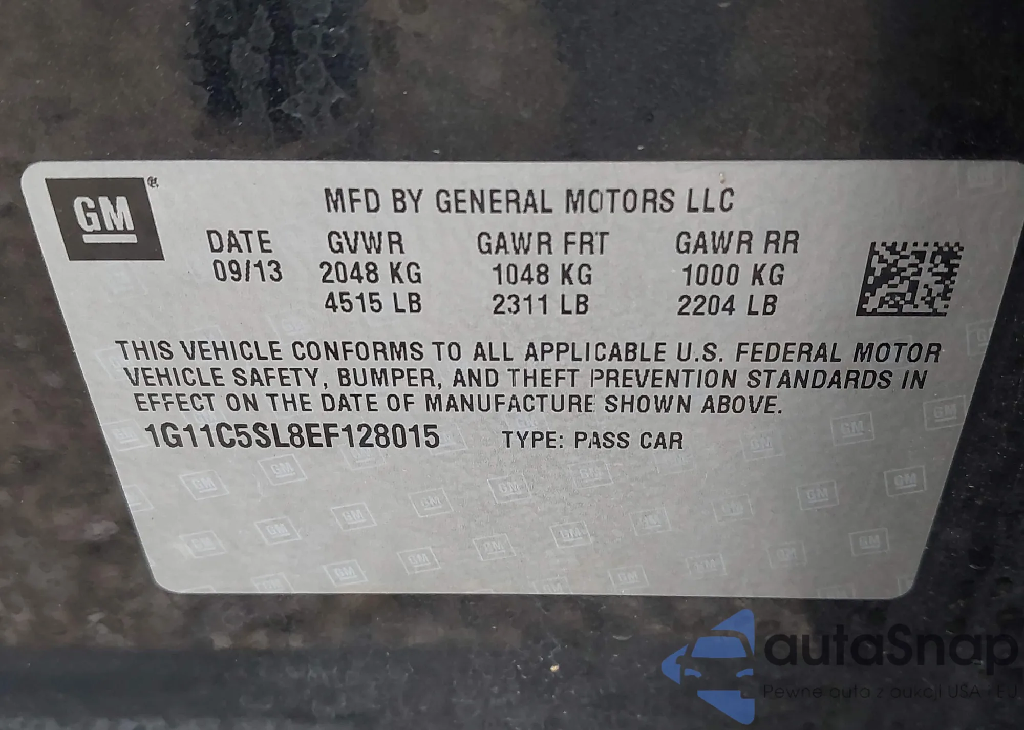 LOT: 43309400 VIN: 1G11C5SL8EF128015