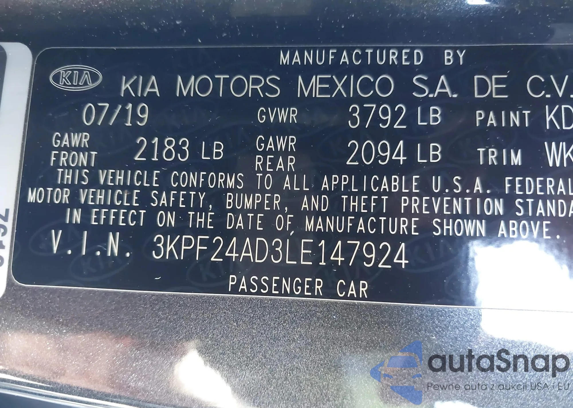 • VIN 3KPF24AD3LE147924