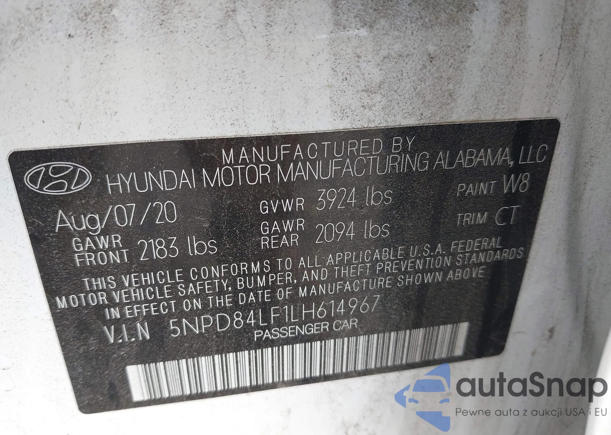 • VIN 5NPEB4AC4BH199849