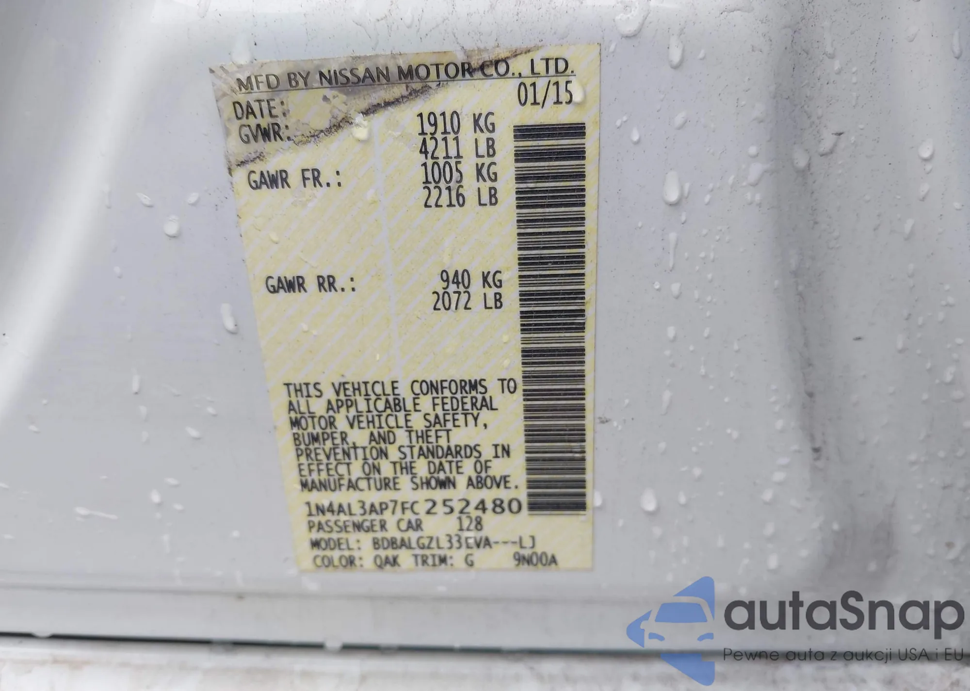 LOT: 43293208 VIN: 1N4AL3AP7FC252480