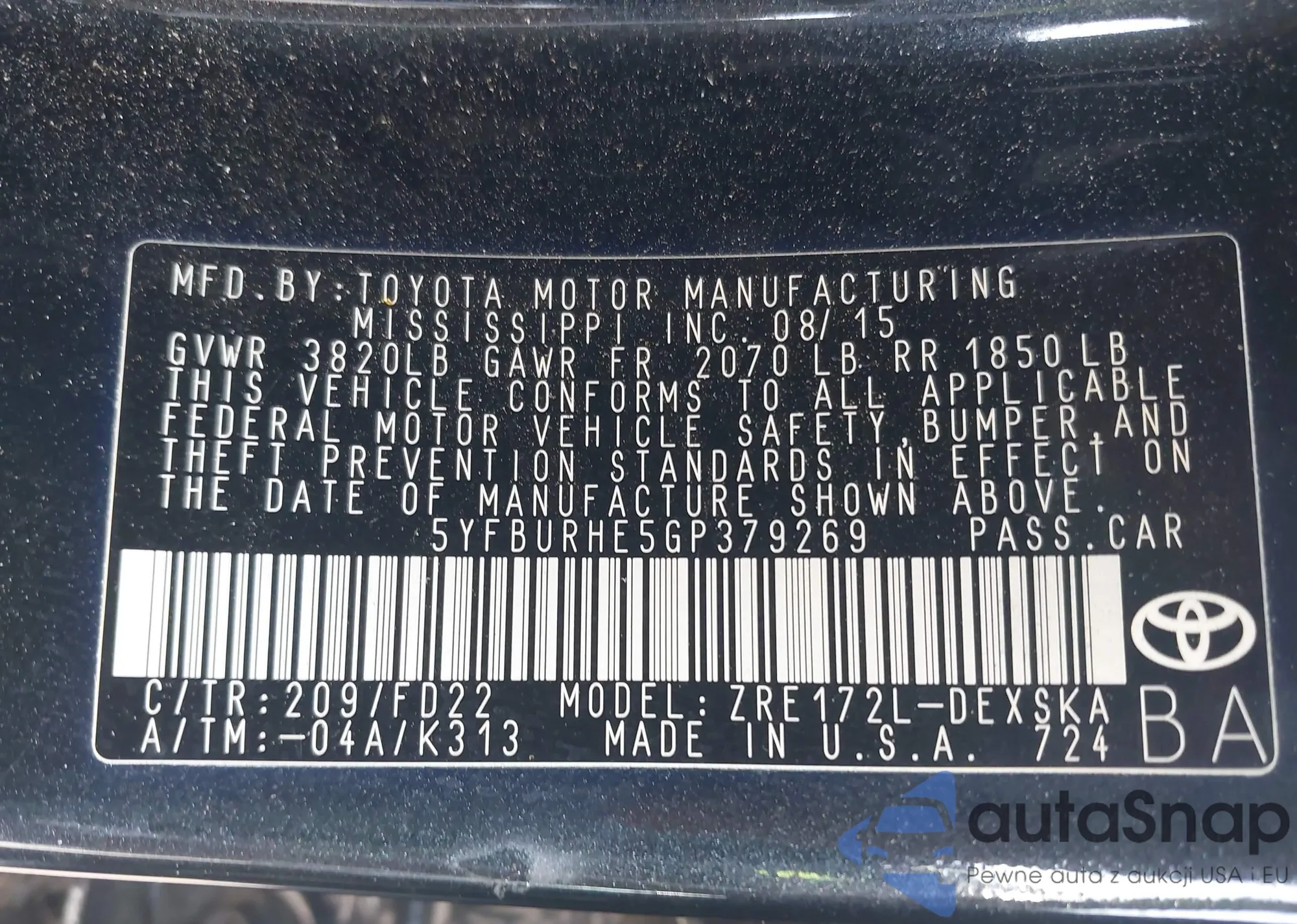 • VIN 4T1DAACK1SU007242