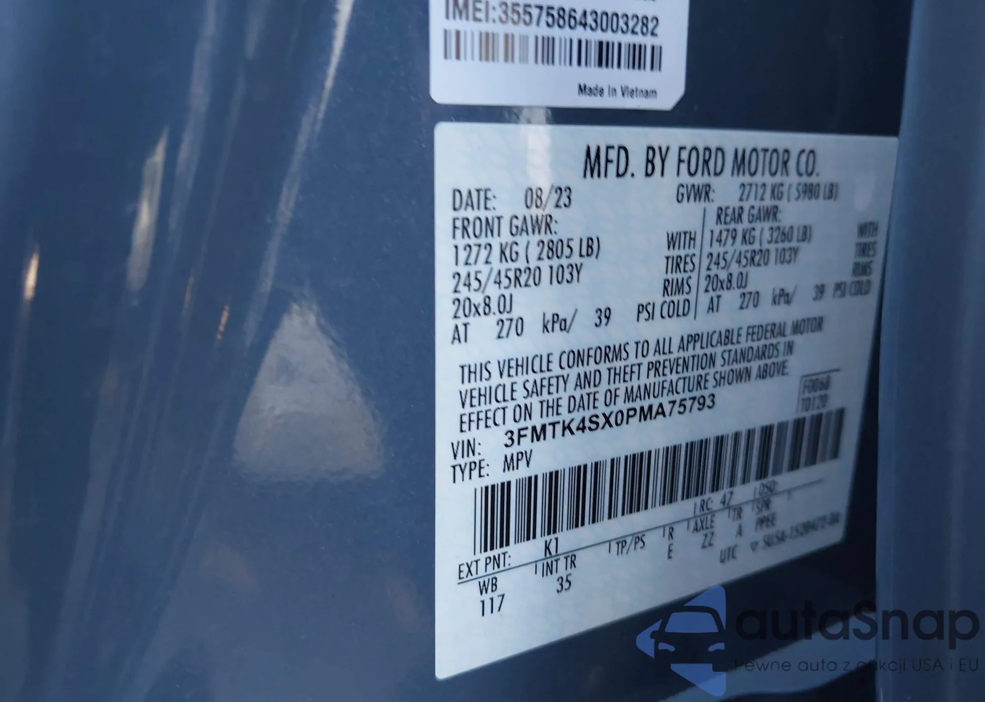 • VIN 3FMTK4SX0PMA75793