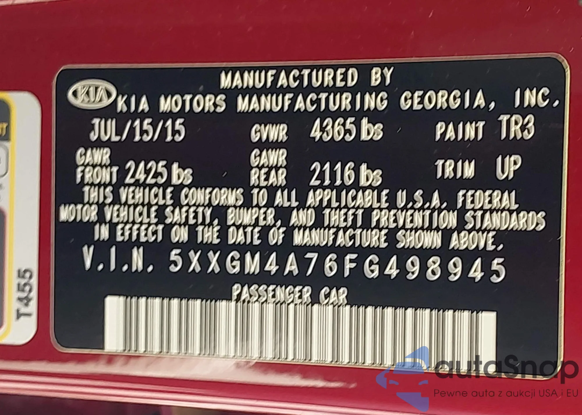 • VIN 5XXGM4A76FG498945