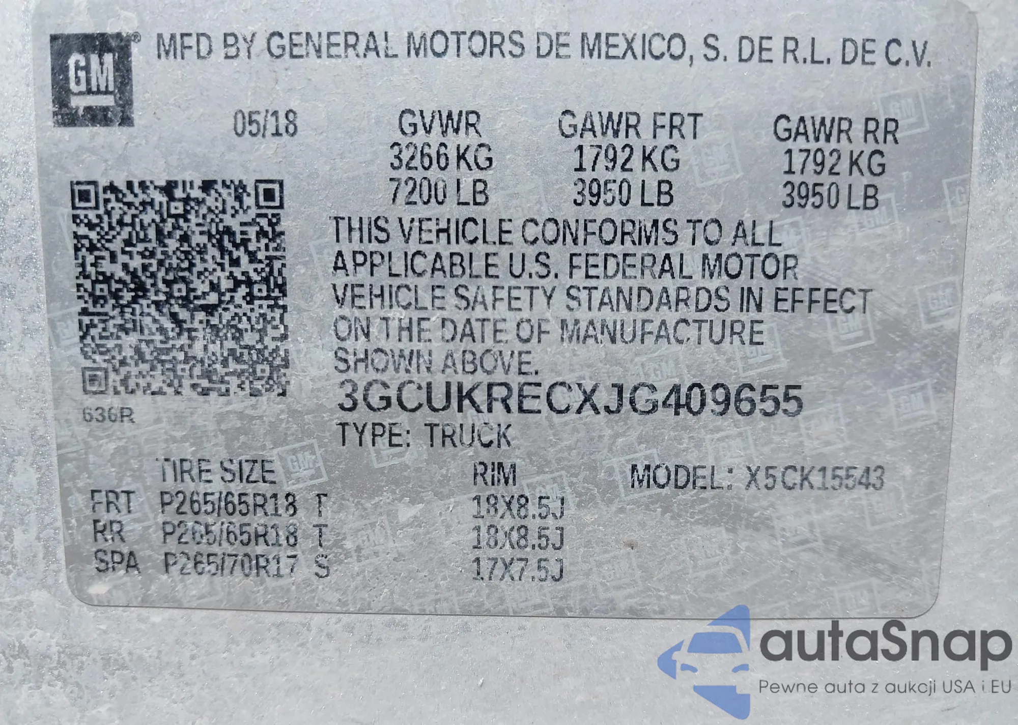 LOT: 43307919 VIN: 5FNYF6H50JB027240
