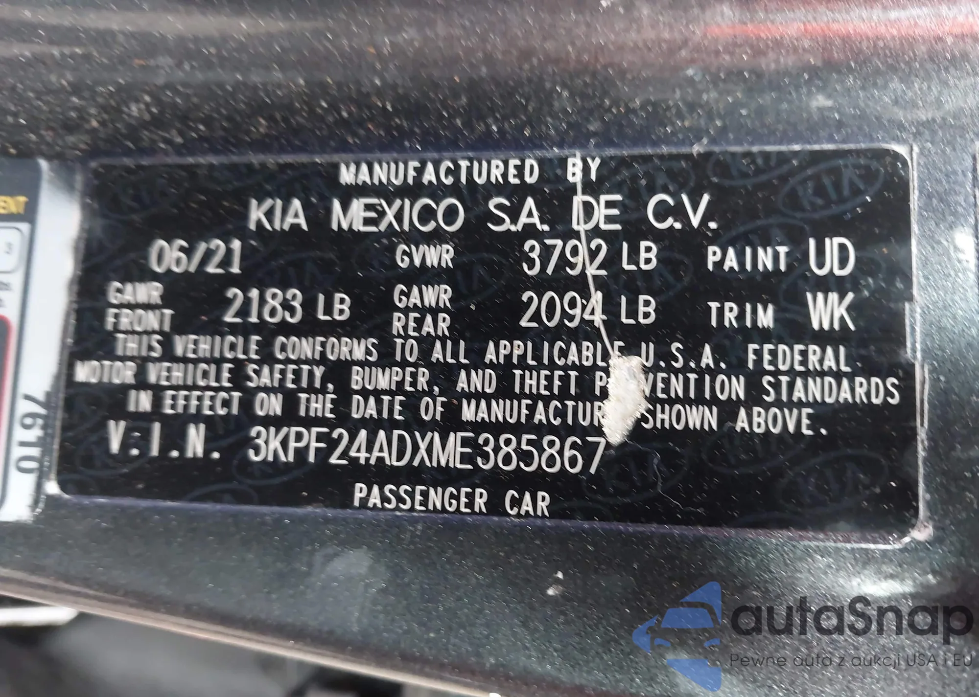 • VIN 3KPF24ADXME385867
