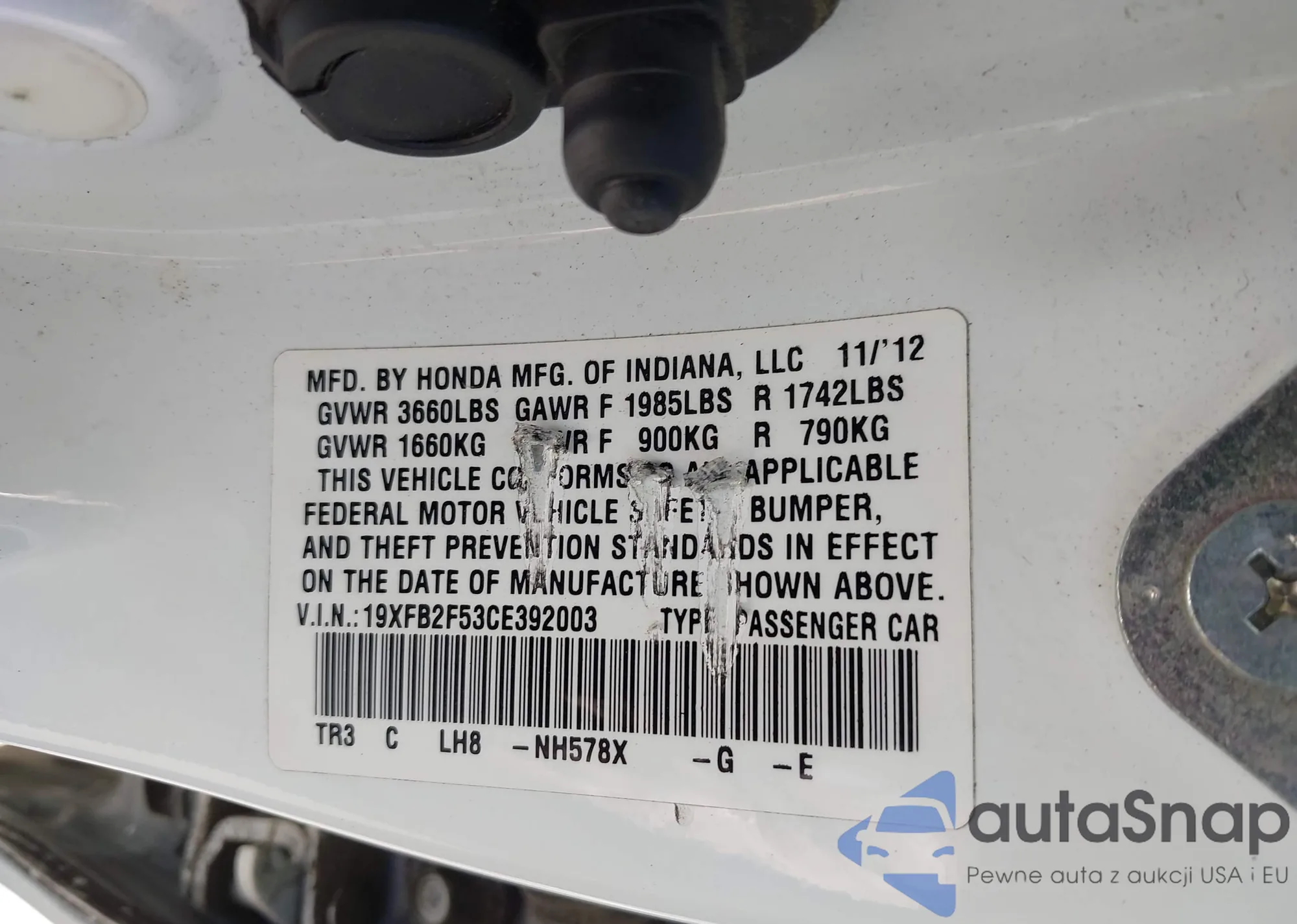 • VIN 19XFB2F53CE392003