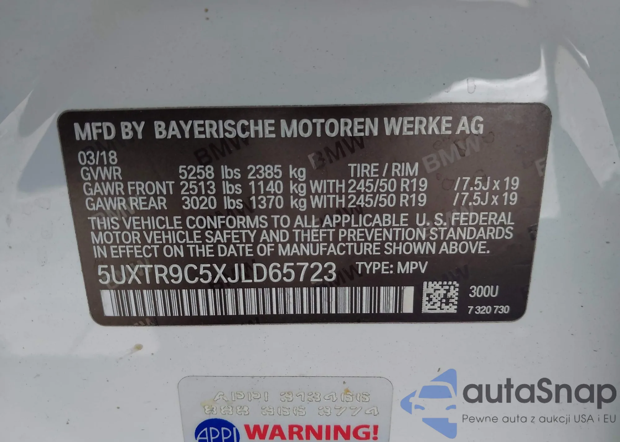 • VIN 5J6RW1H8XKA006479