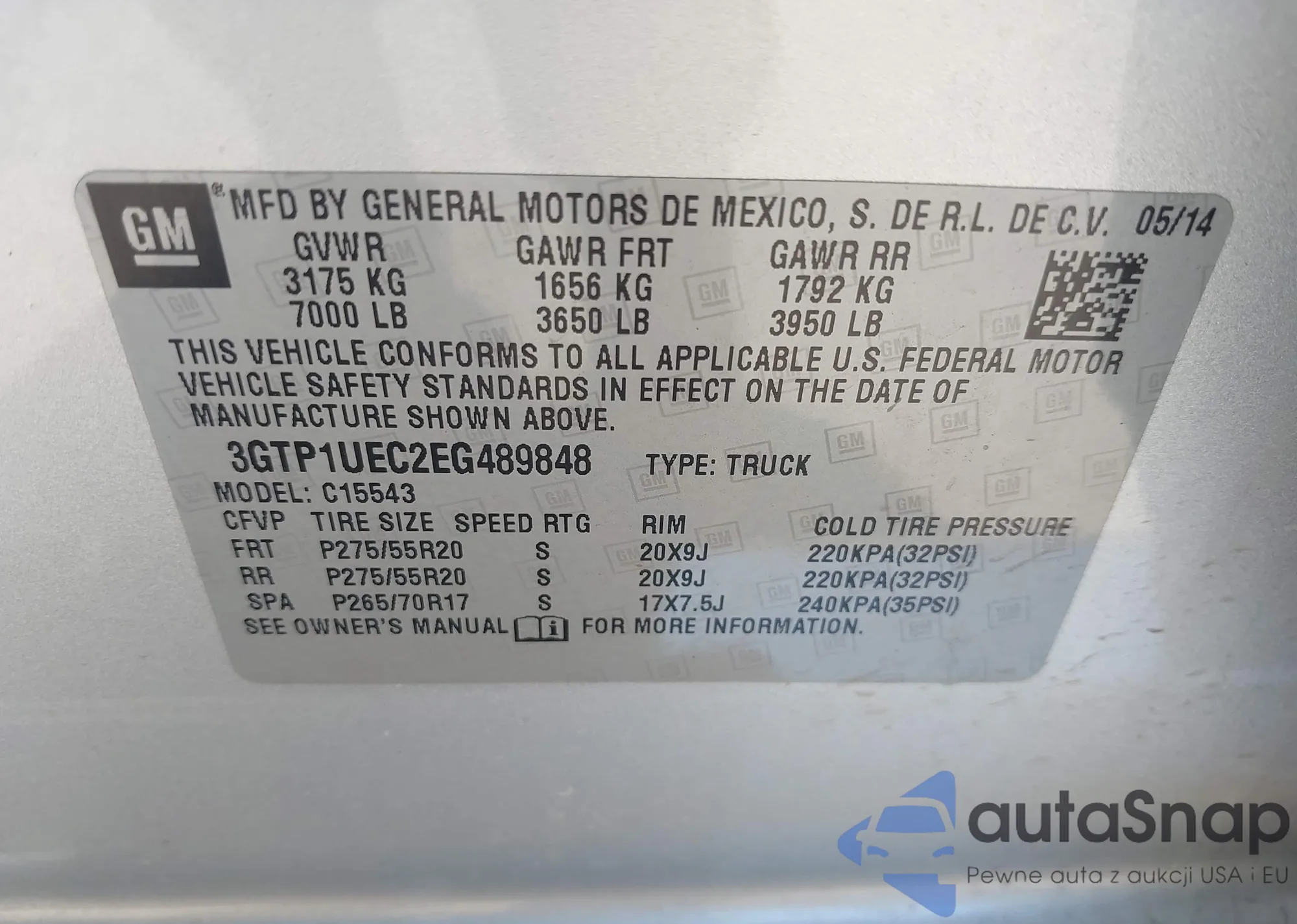 • VIN 3GTP1UEC2EG489848