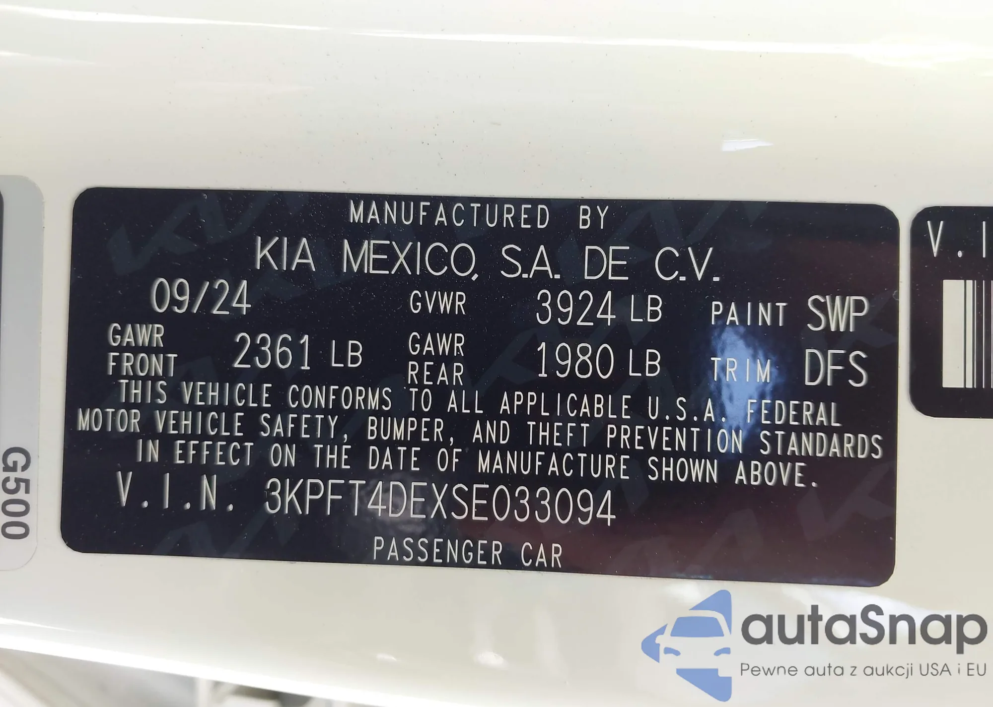 • VIN 3KPFT4DEXSE033094
