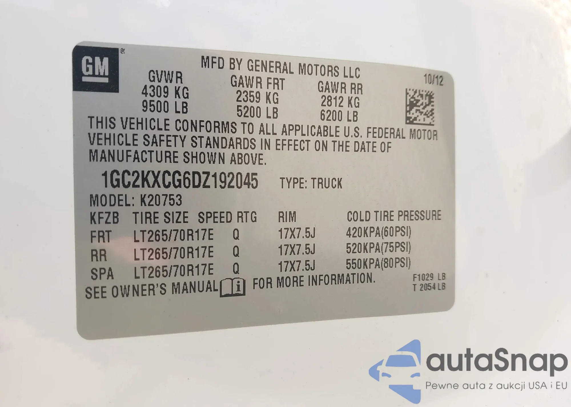 • VIN 1GC2KXCG6DZ192045