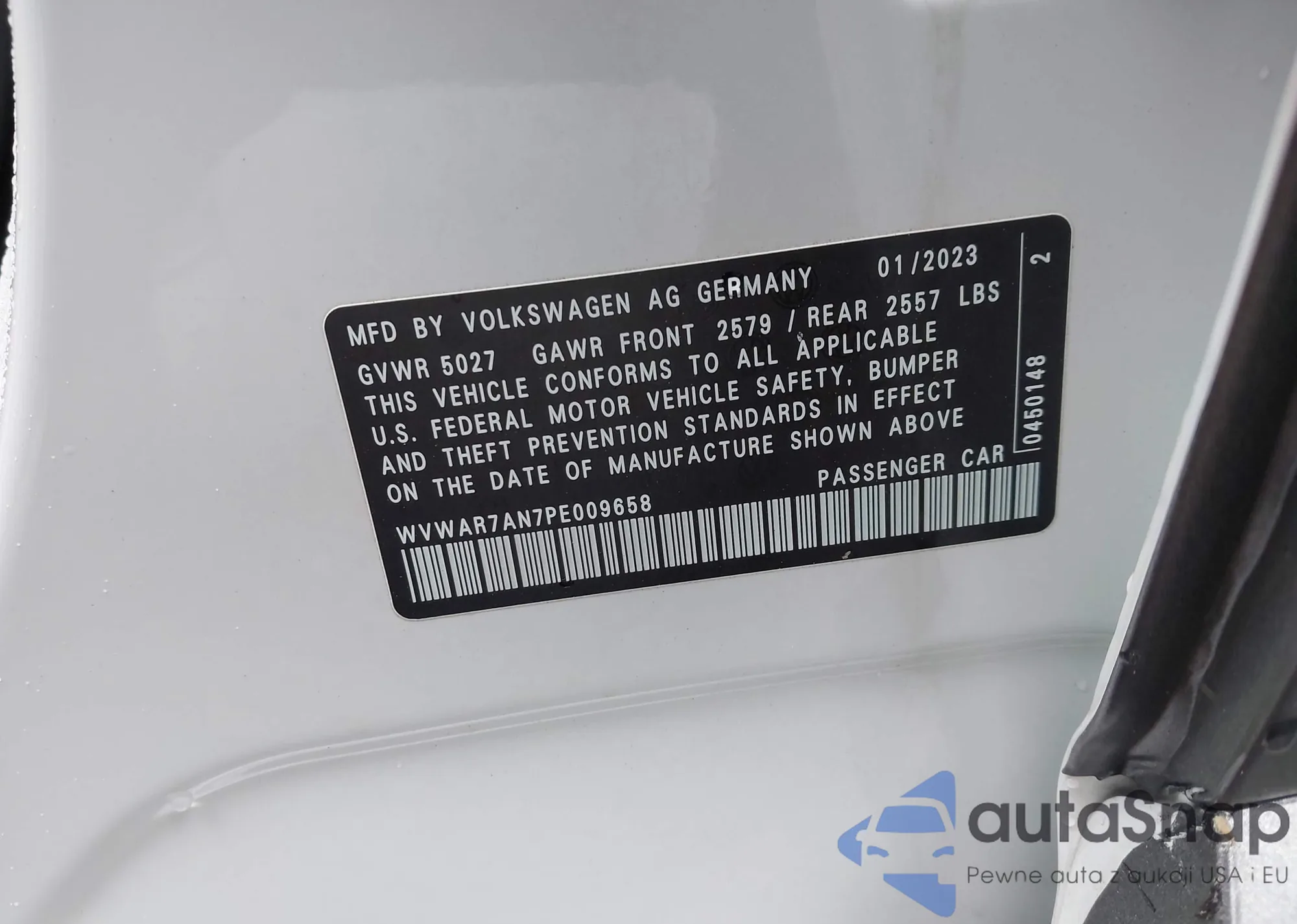 LOT: 43248449 VIN: WVWAR7AN7PE009658