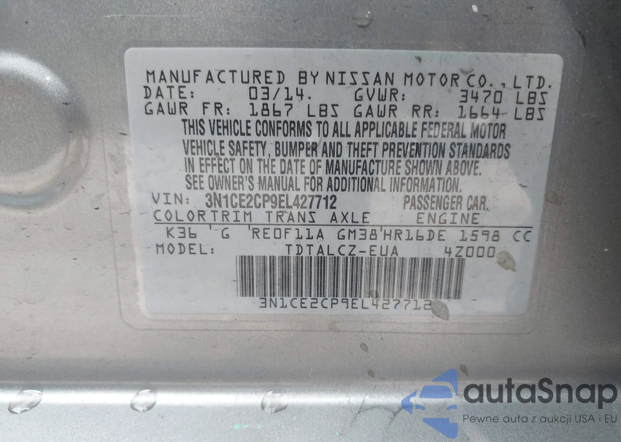 • VIN 3N1CE2CP9EL427712