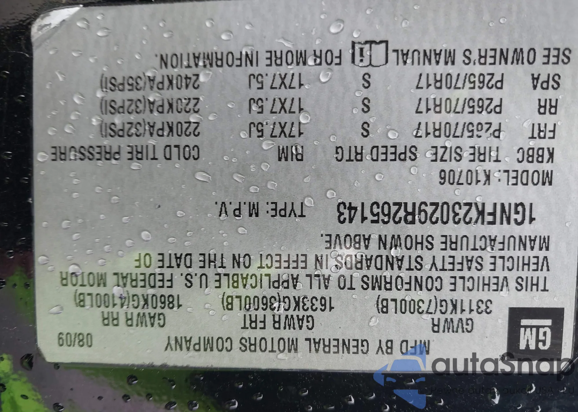 LOT: 43142265 VIN: 1GNFK23029R265143