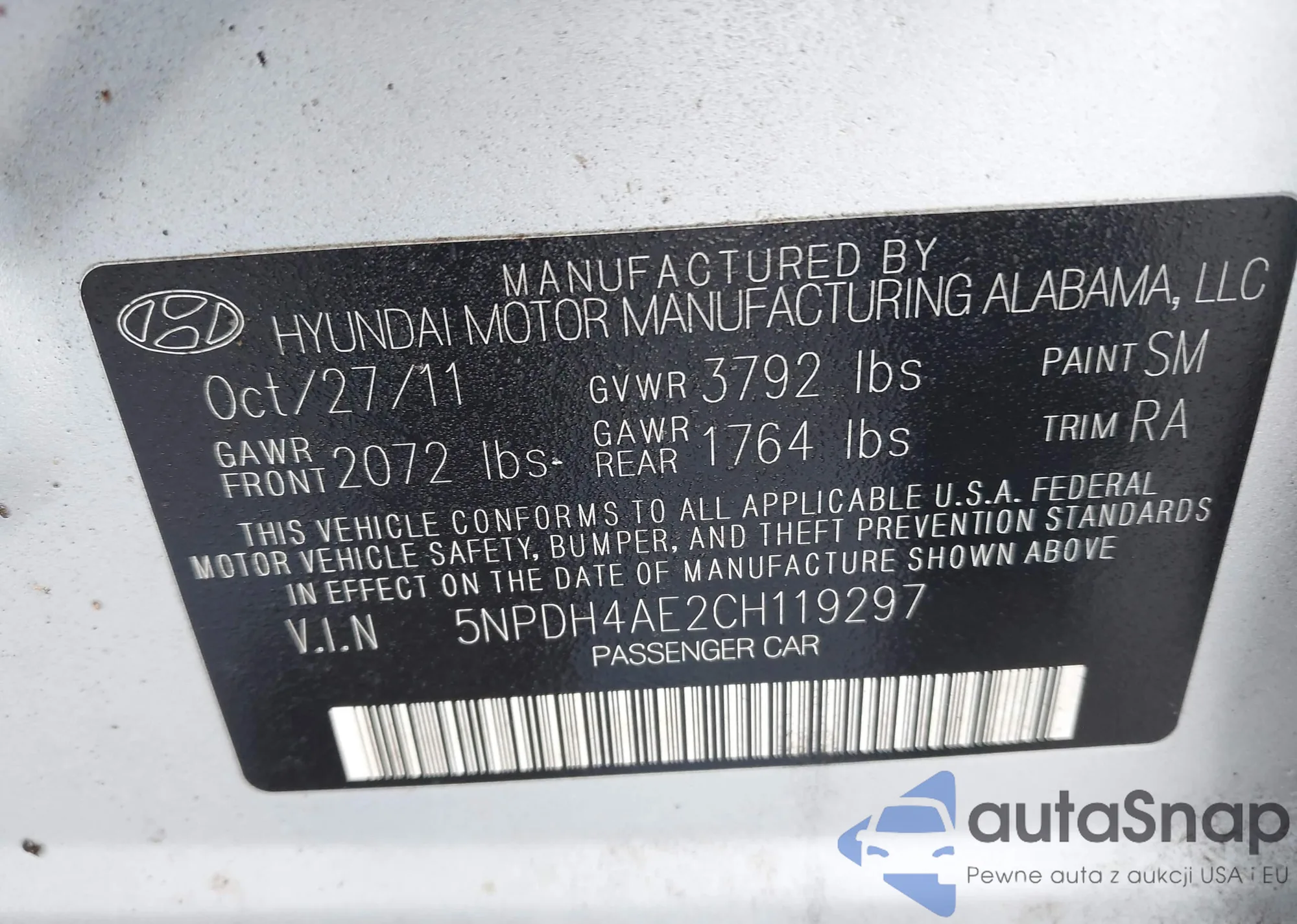 LOT: 43400015 VIN: 5NPDH4AE2CH119297