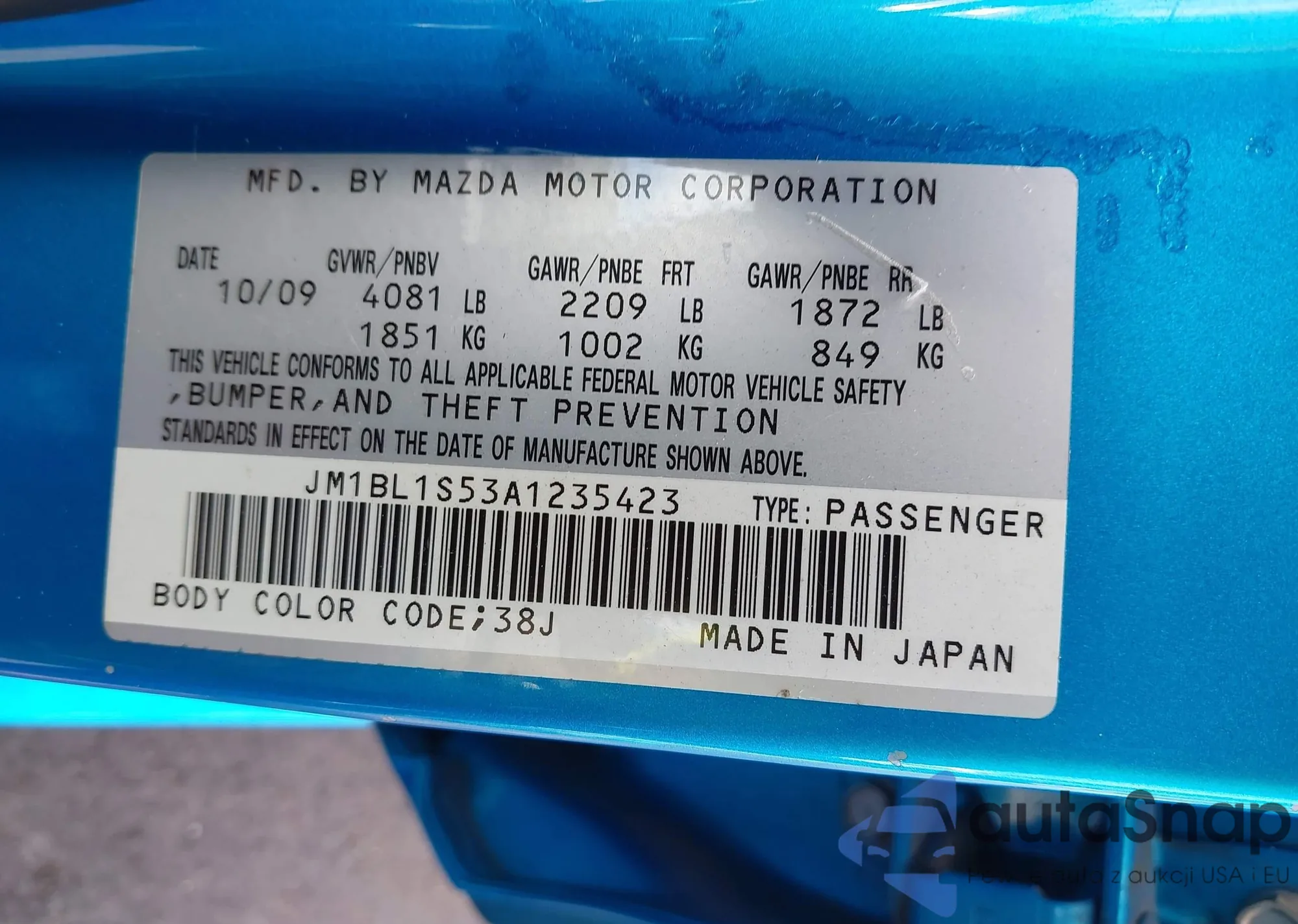 LOT: 43021463 VIN: JM1BL1S53A1235423