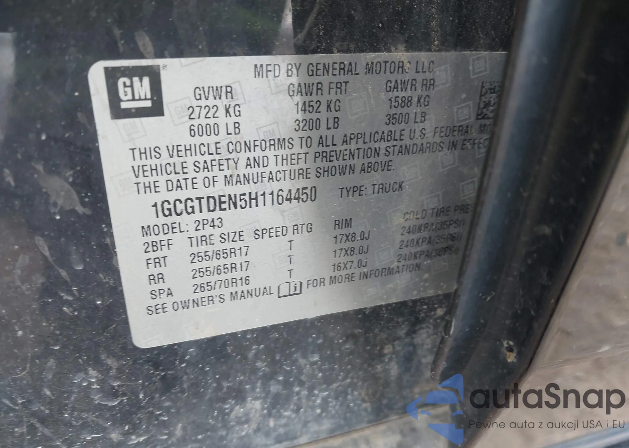 LOT: 43159082 VIN: 1GCGTDEN5H1164450