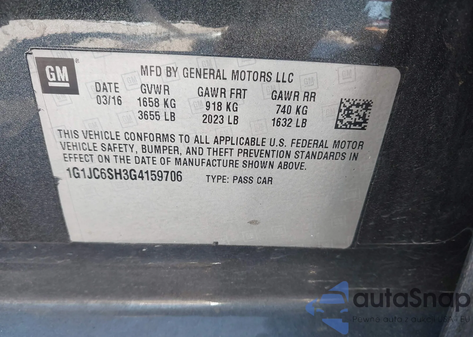 LOT: 43367368 VIN: 1G11C5SA3GF116436
