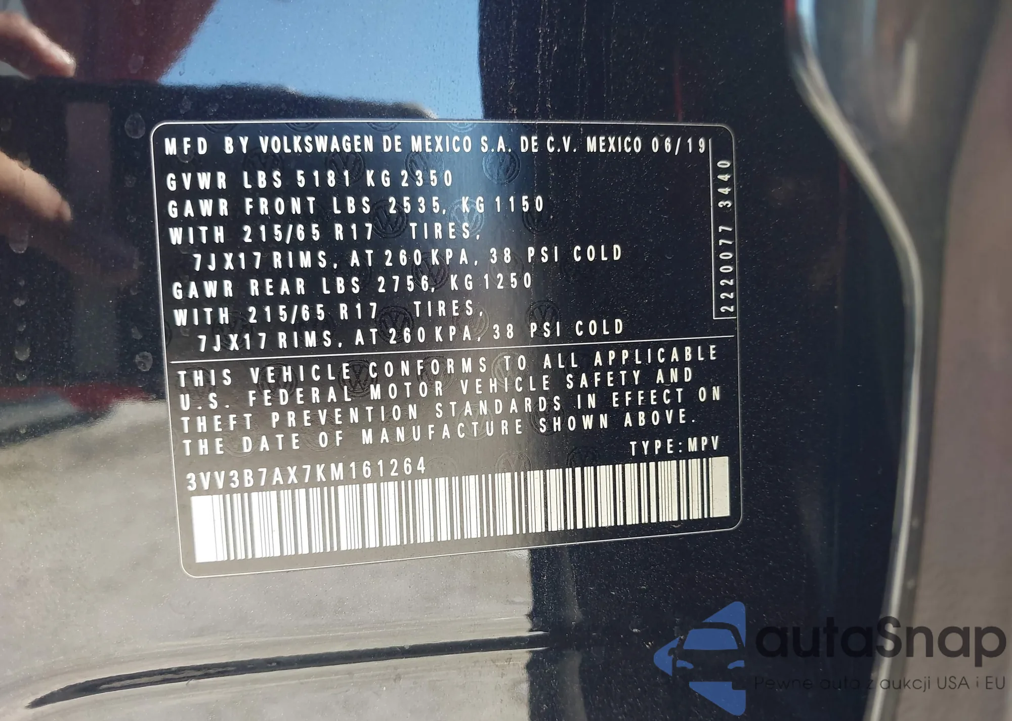 • VIN 3VV3B7AX7KM161264