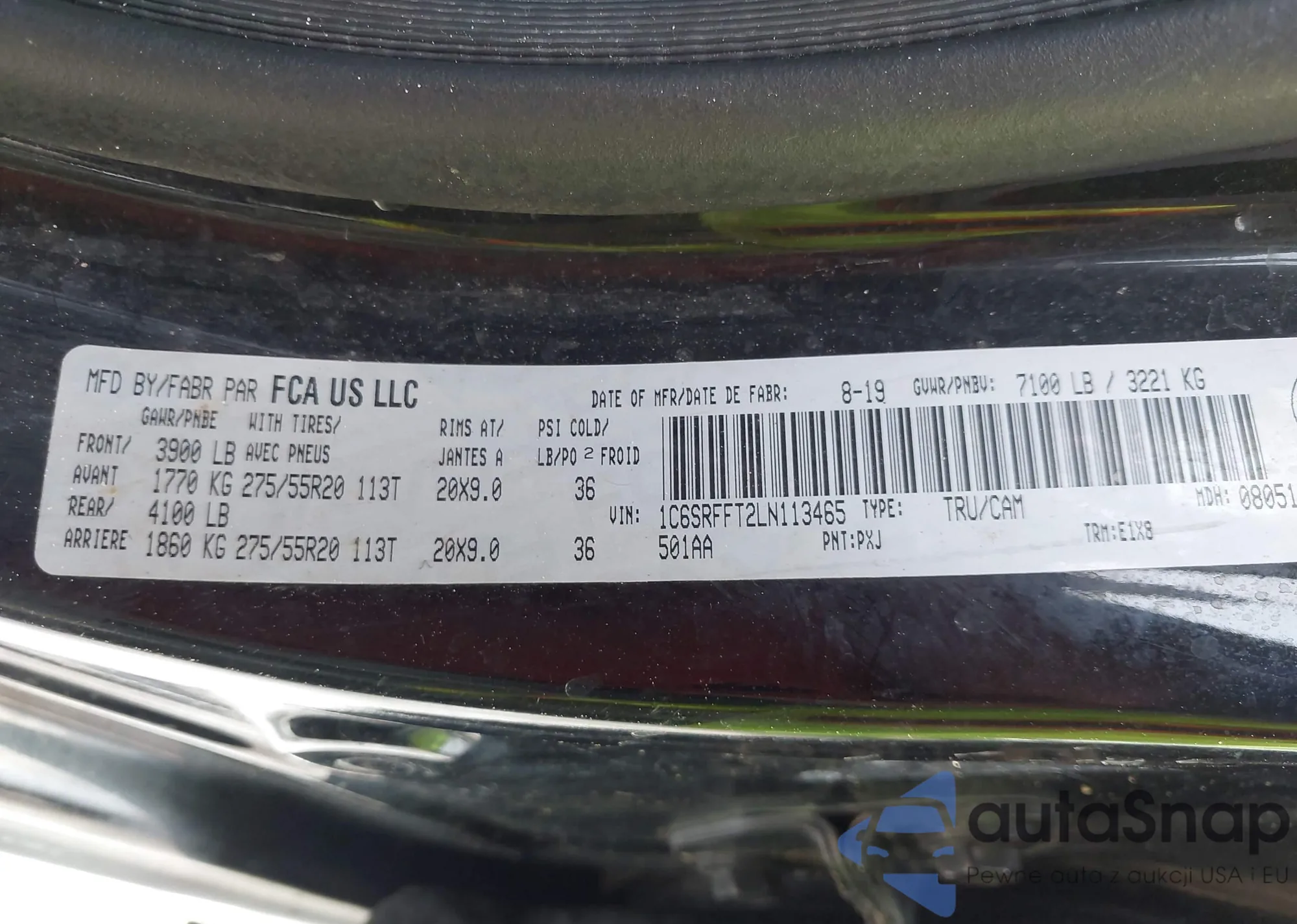 • VIN 1C6SRFFT2LN113465