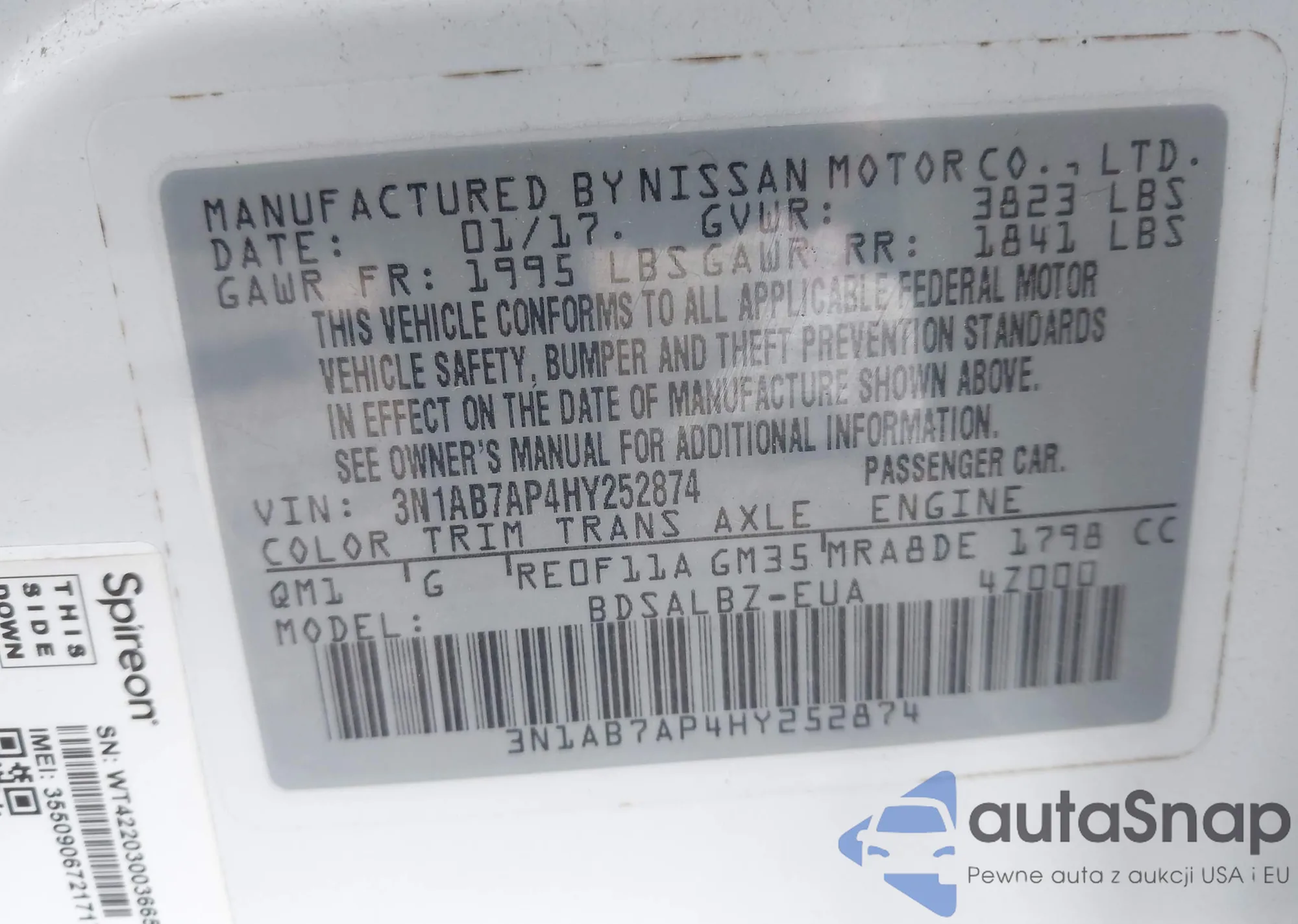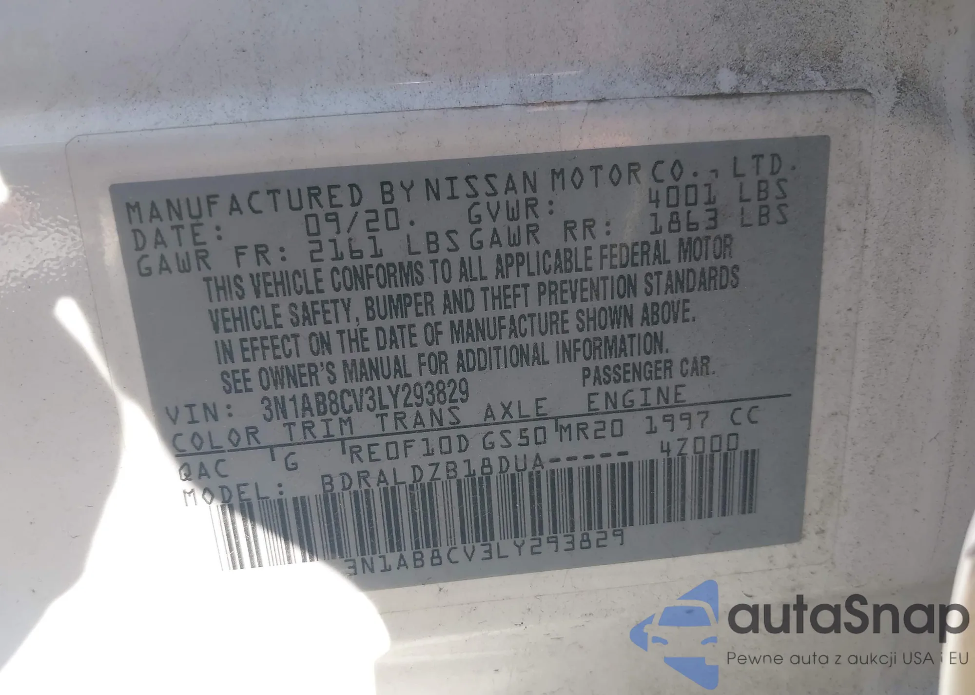 • VIN 3N1AB8CV3LY293829