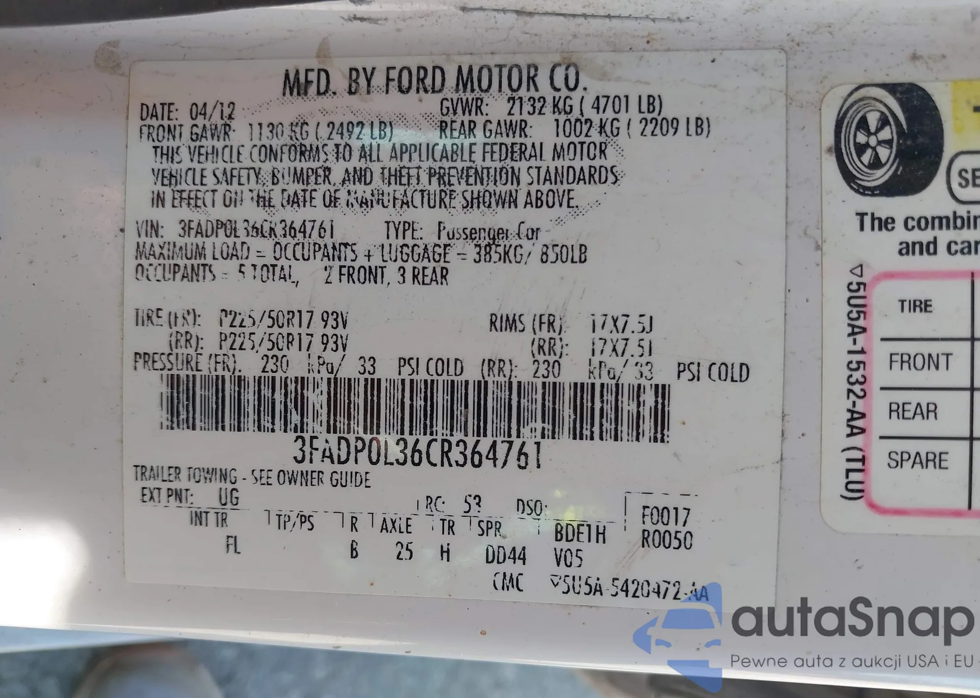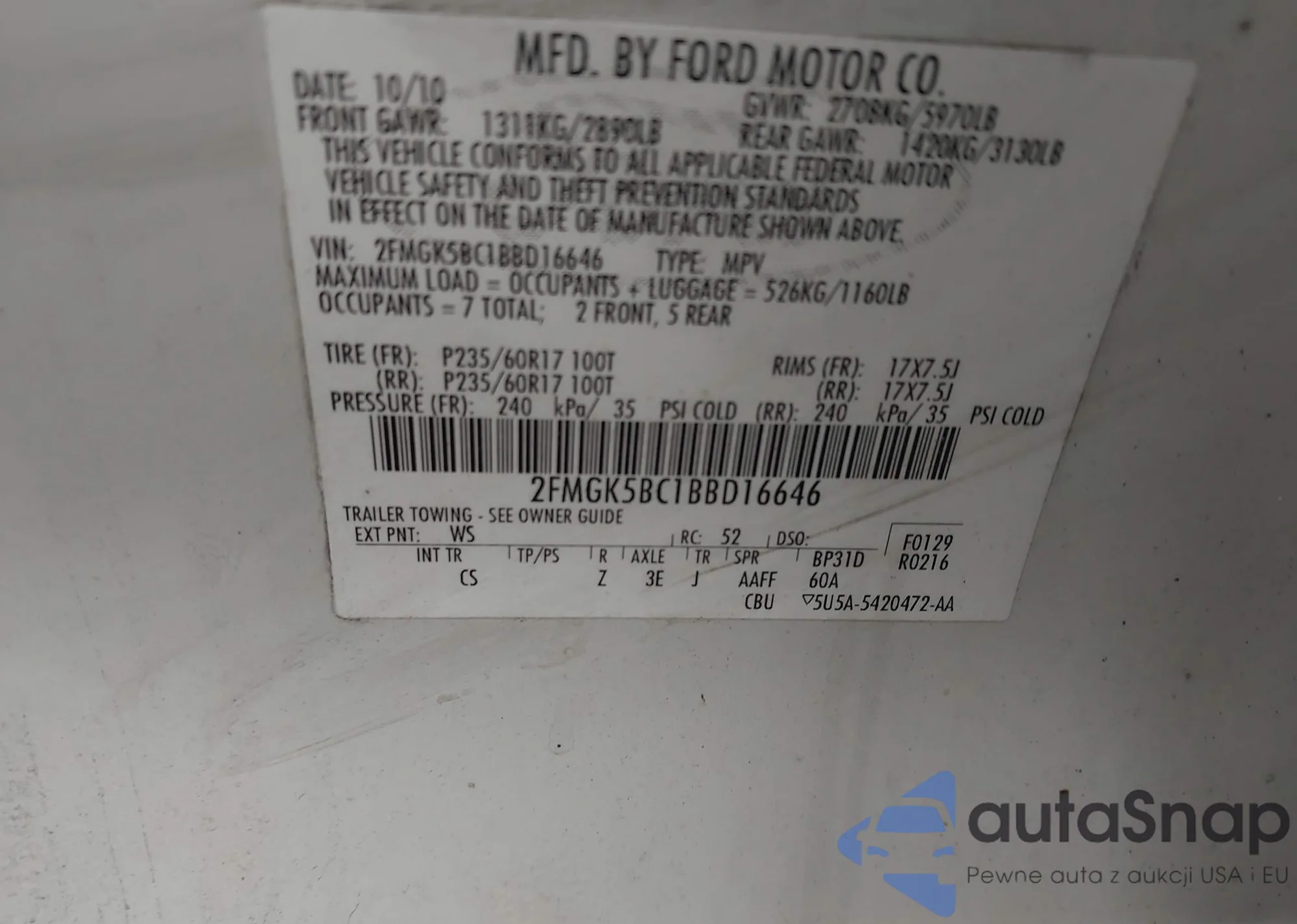 • VIN 2FMGK5BC1BBD16646