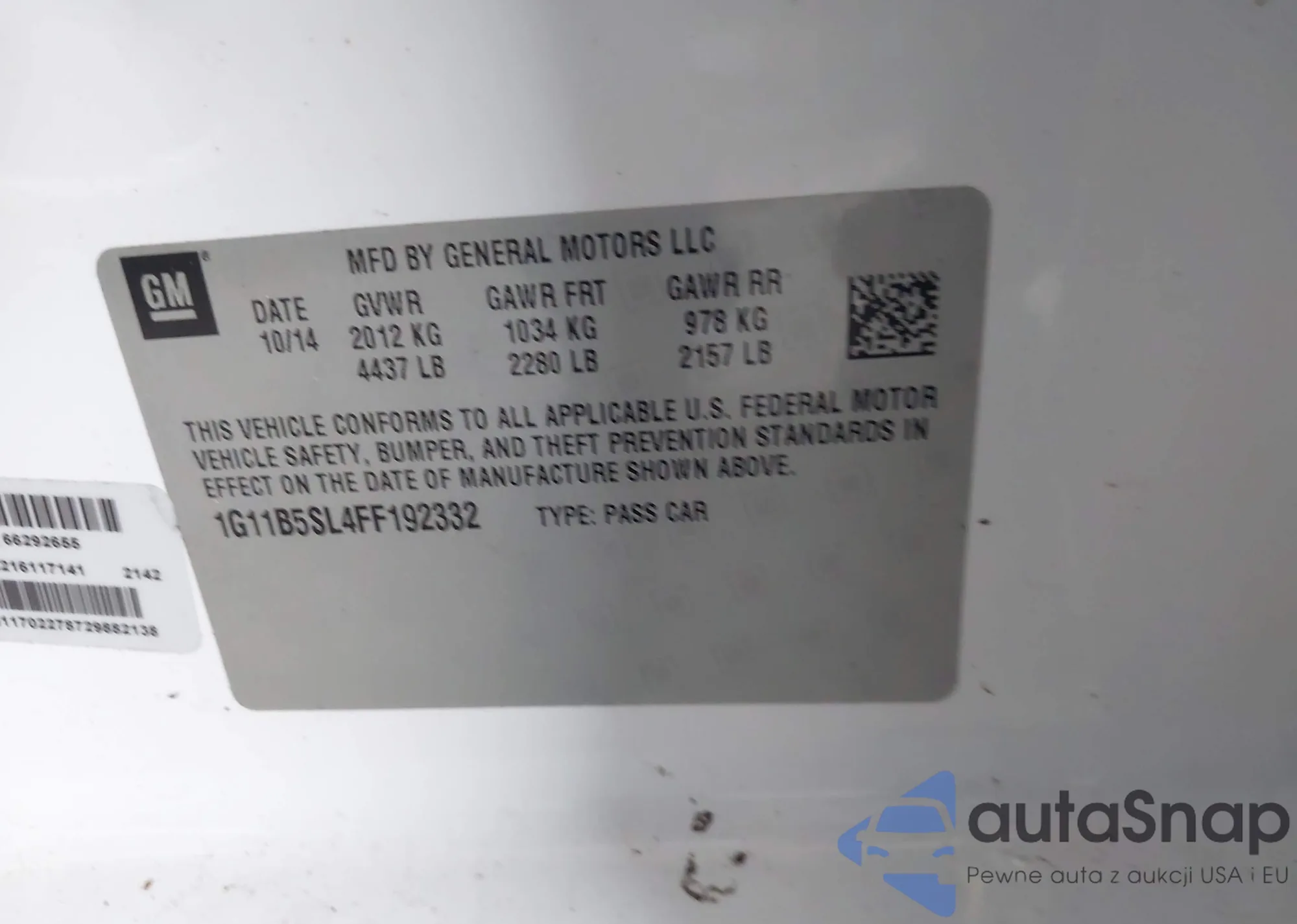 LOT: 43567145 VIN: 1G11B5SL4FF192332