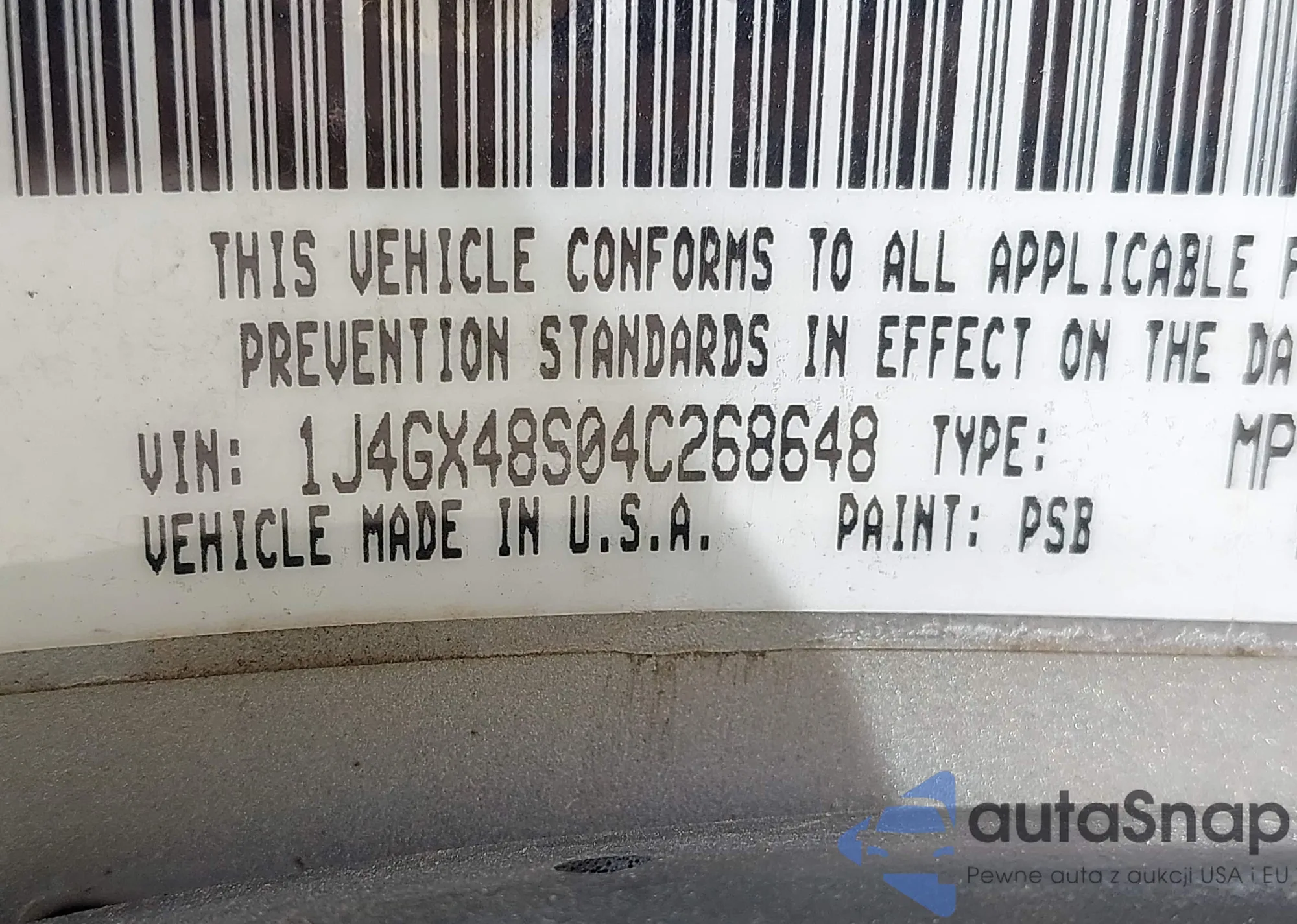 • VIN 4T1CA38PX4U014317