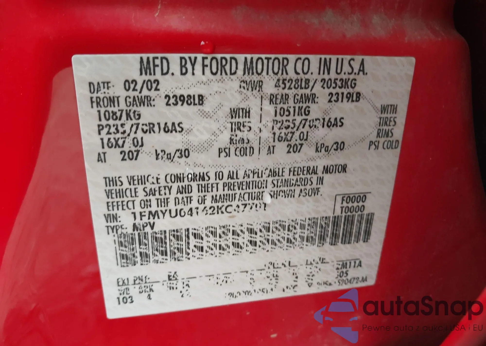 LOT: 43285808 VIN: 1FMYU04162KC47701