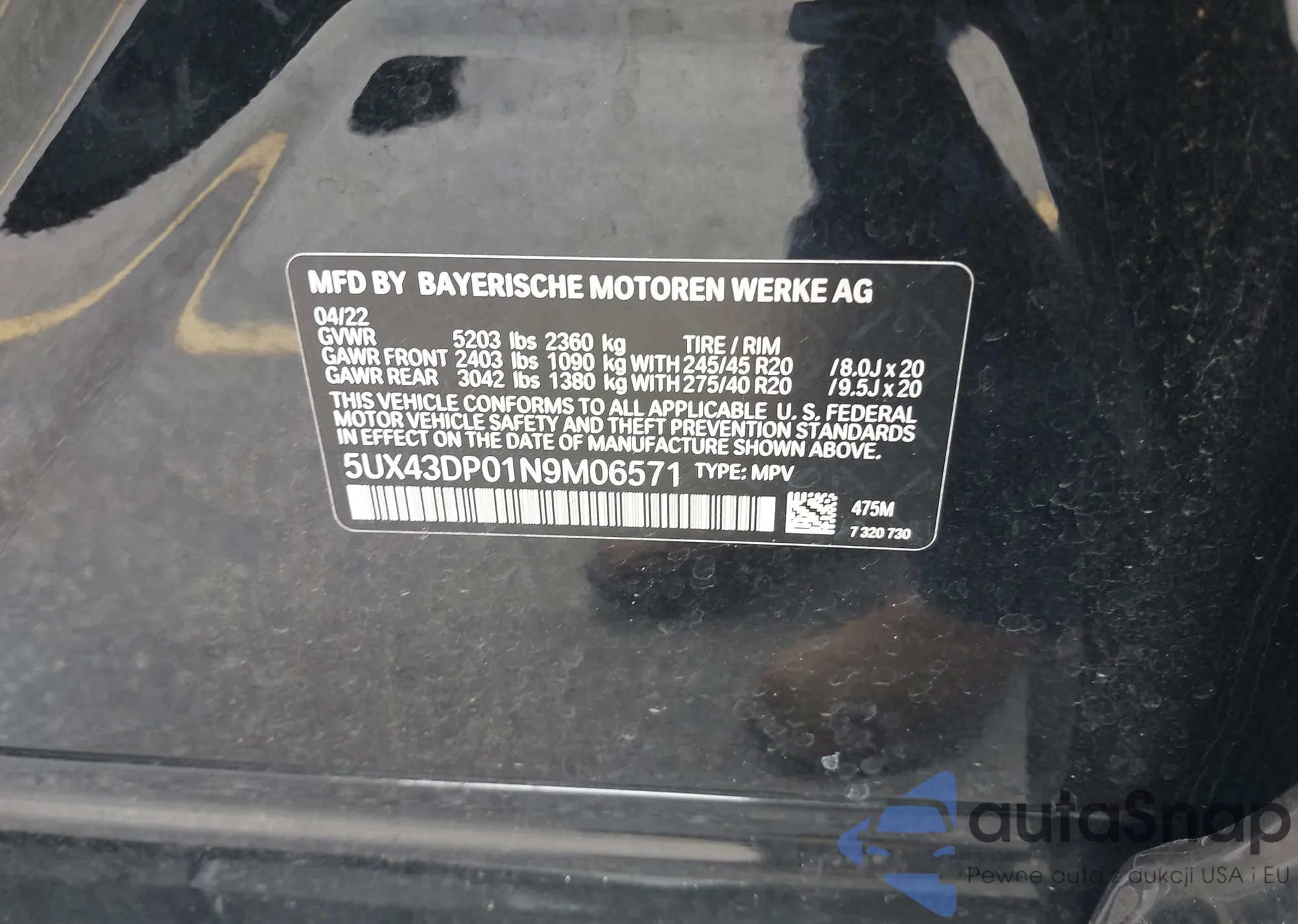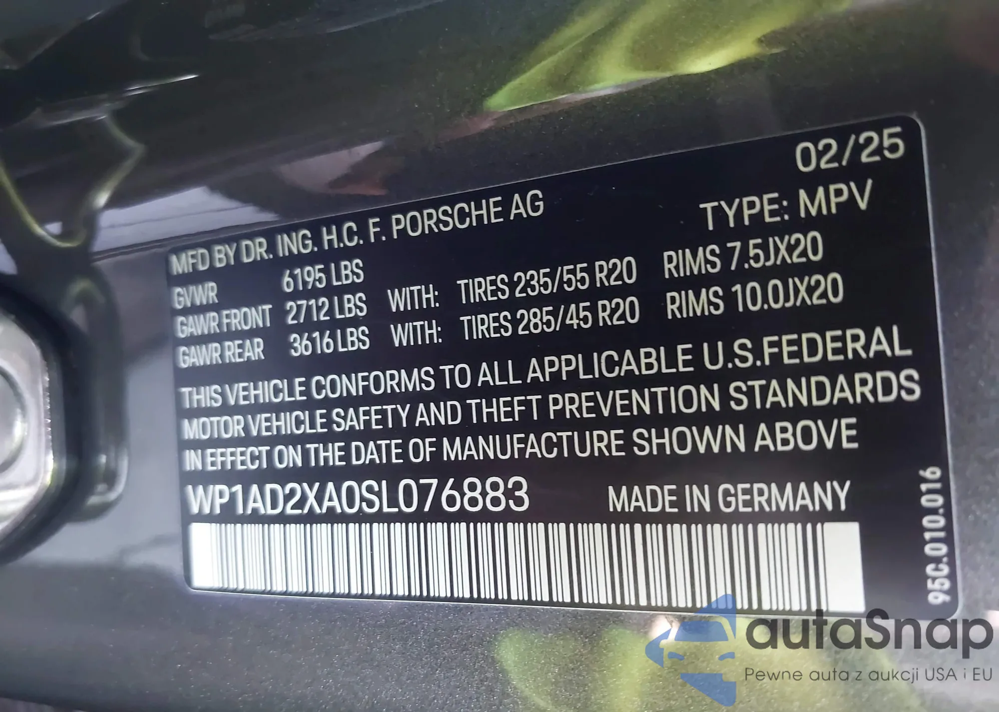 LOT: 43347841 VIN: WP1AD2XA0SL076883