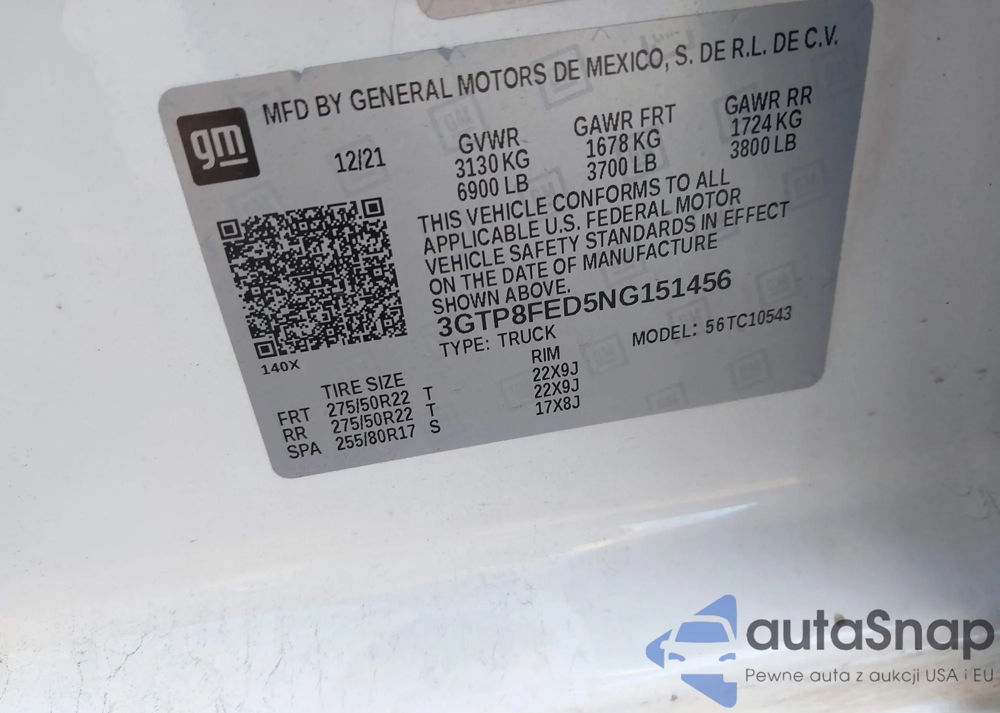 • VIN 3GTP8FED5NG151456