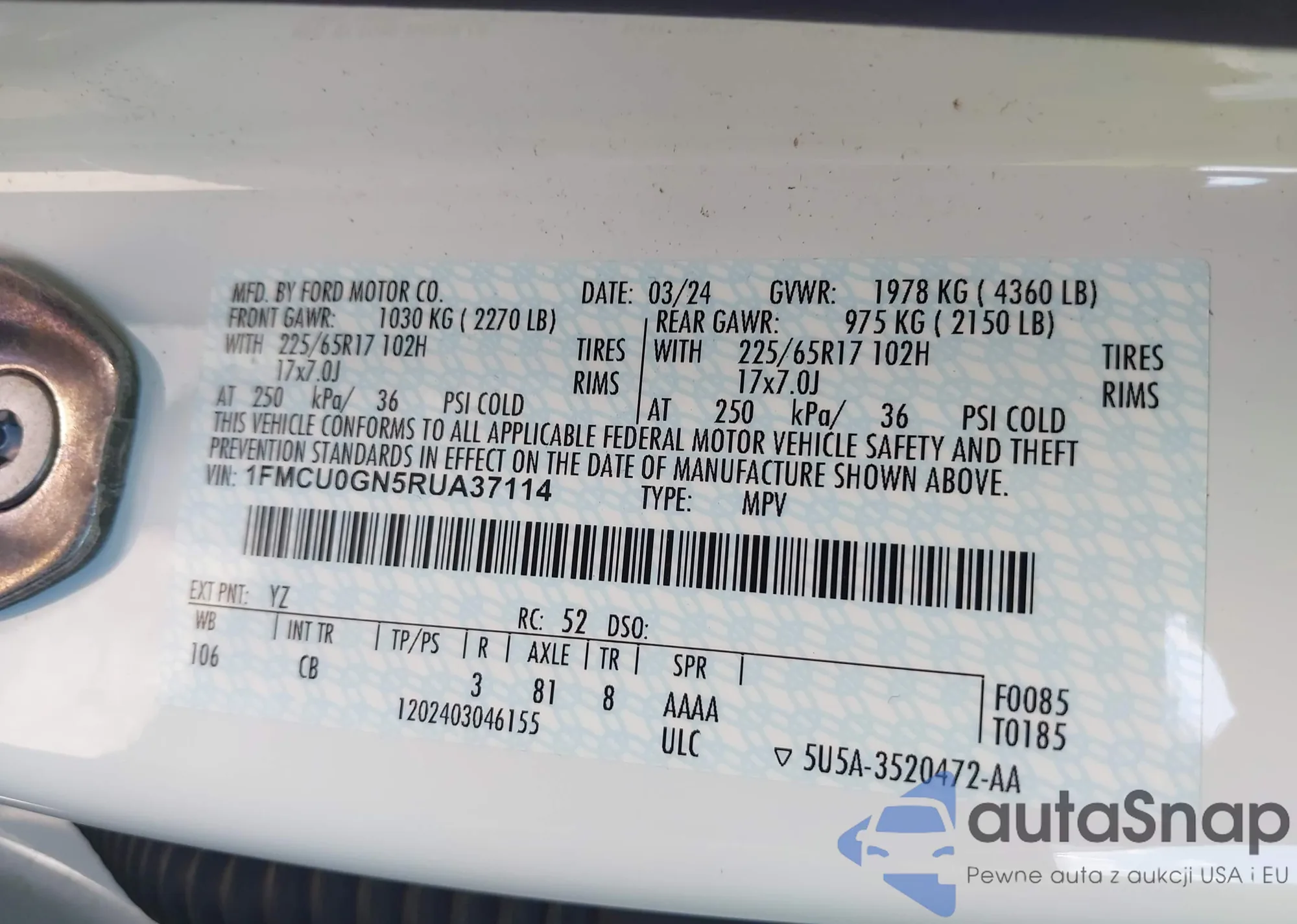 • VIN 1FMCU0GN5RUA37114