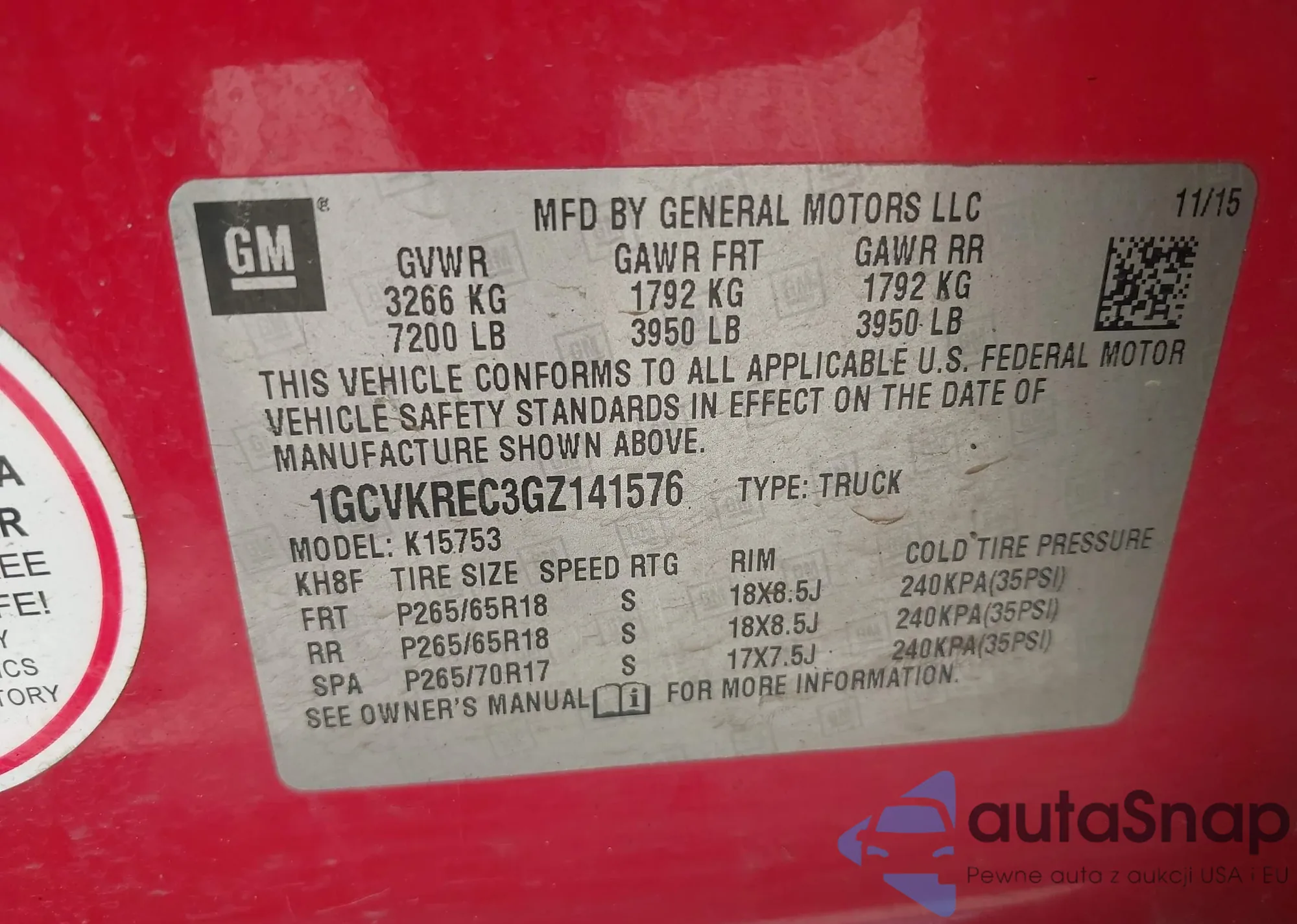 • VIN 1GCVKREC3GZ141576