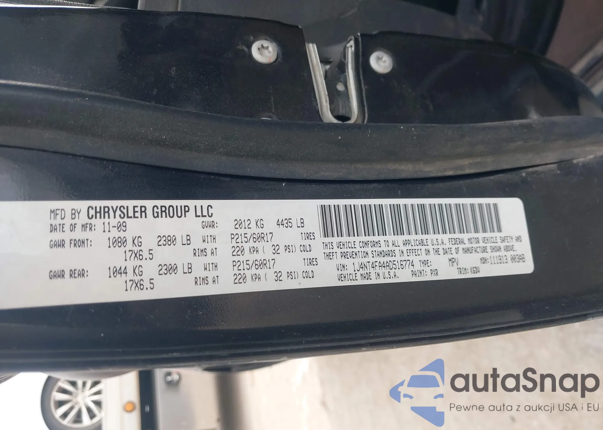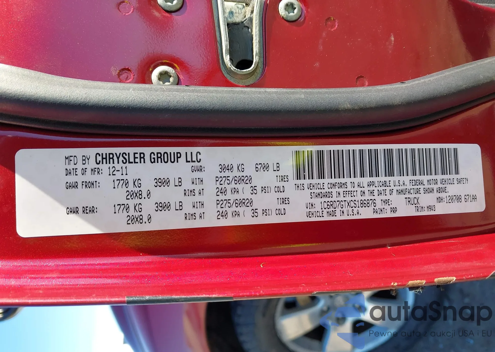 • VIN 1C4RDJDG2TC166922