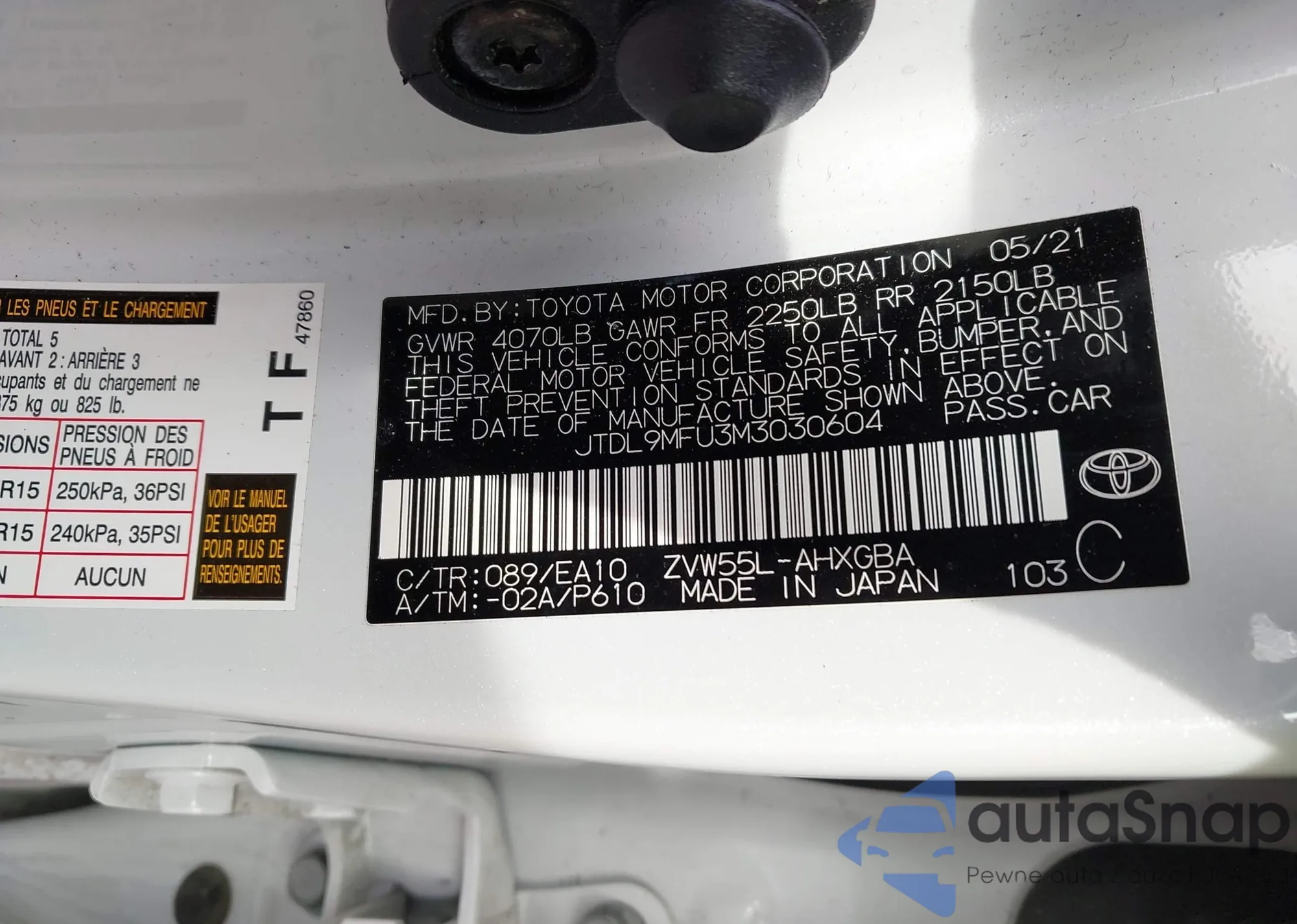 LOT: 41837427 VIN: JTDL9MFU3M3030604