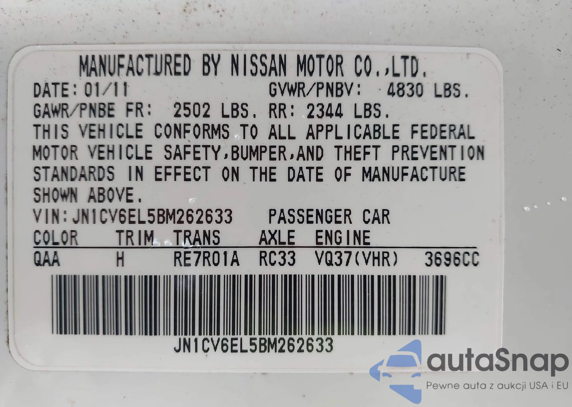 • VIN JN1CV6EL5BM262633