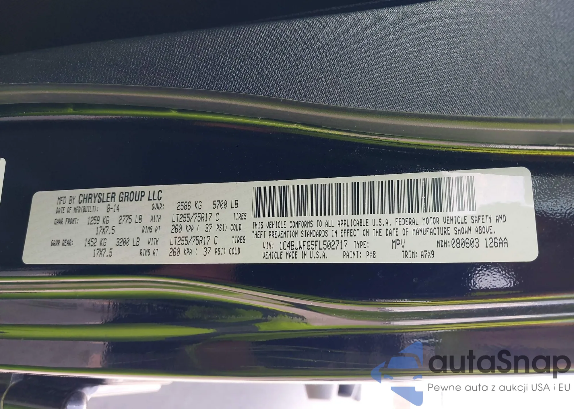 • VIN 1C4BJWFG5FL502717