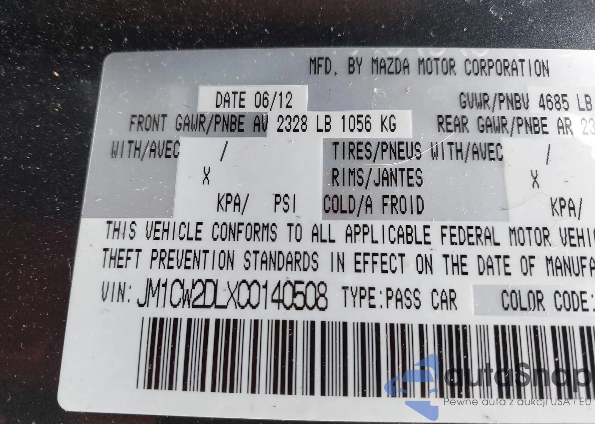 LOT: 43262047 VIN: 3MW89FF02P8D12613