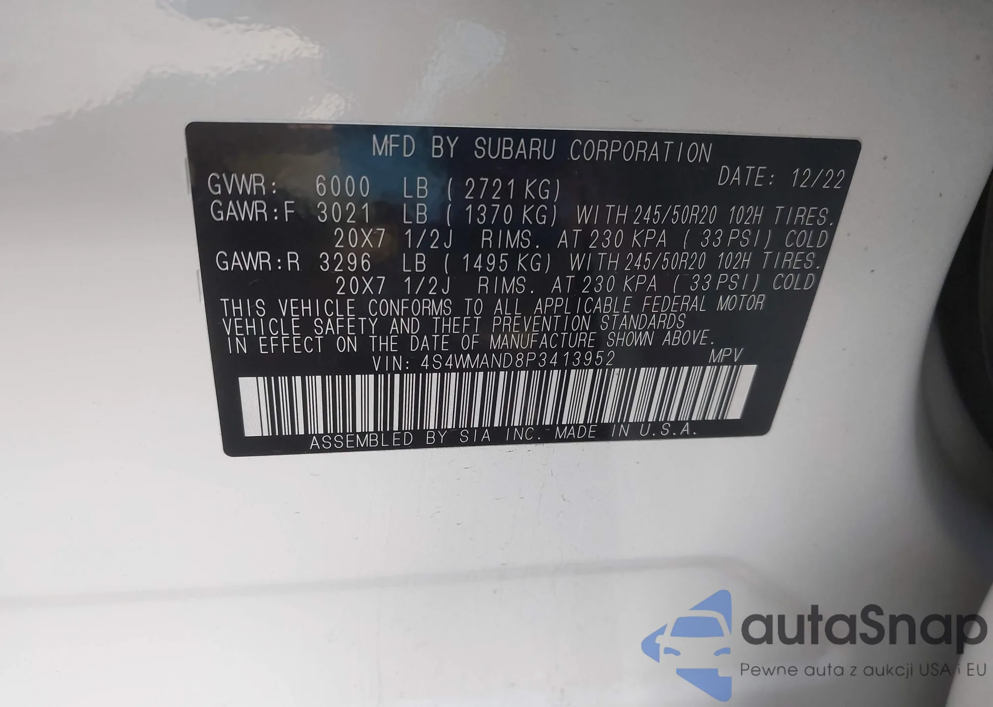 LOT: 43462187 VIN: 4S4WMAND8P3413952