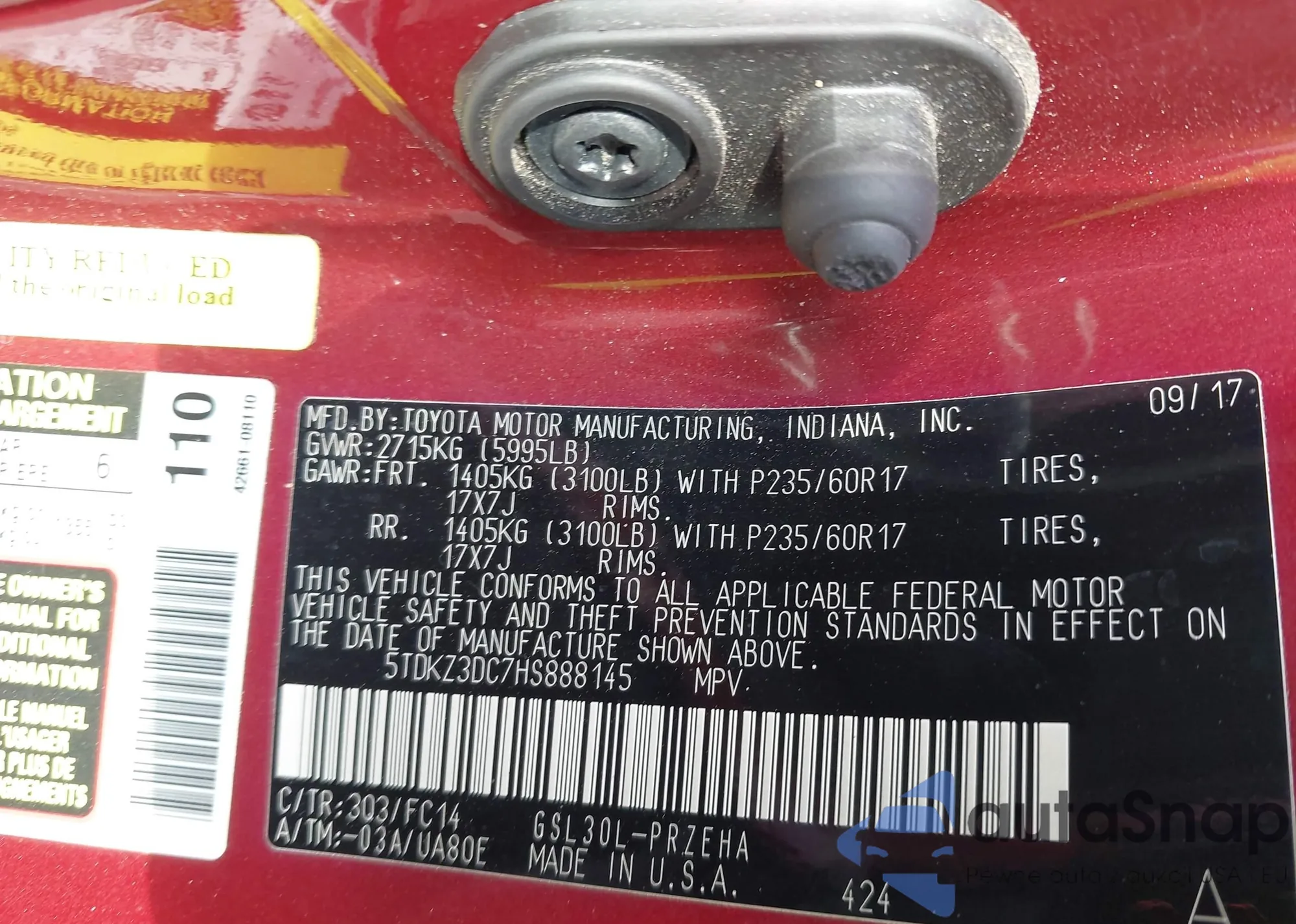 • VIN 5TDKZ3DC7HS888145