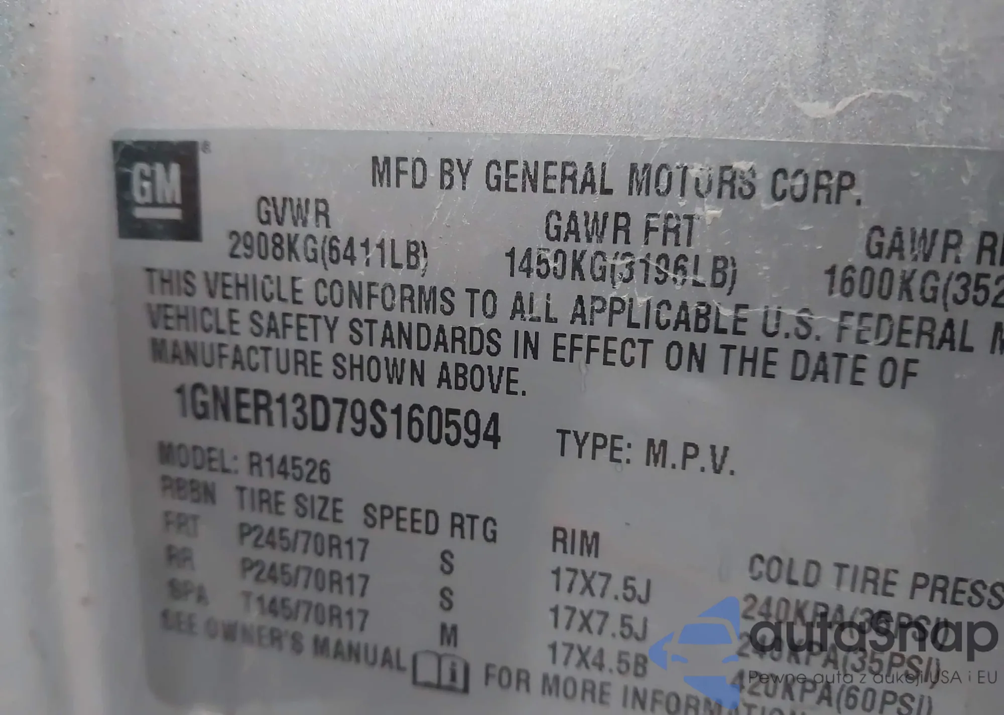 LOT: 43510892 VIN: 1GNER13D79S160594
