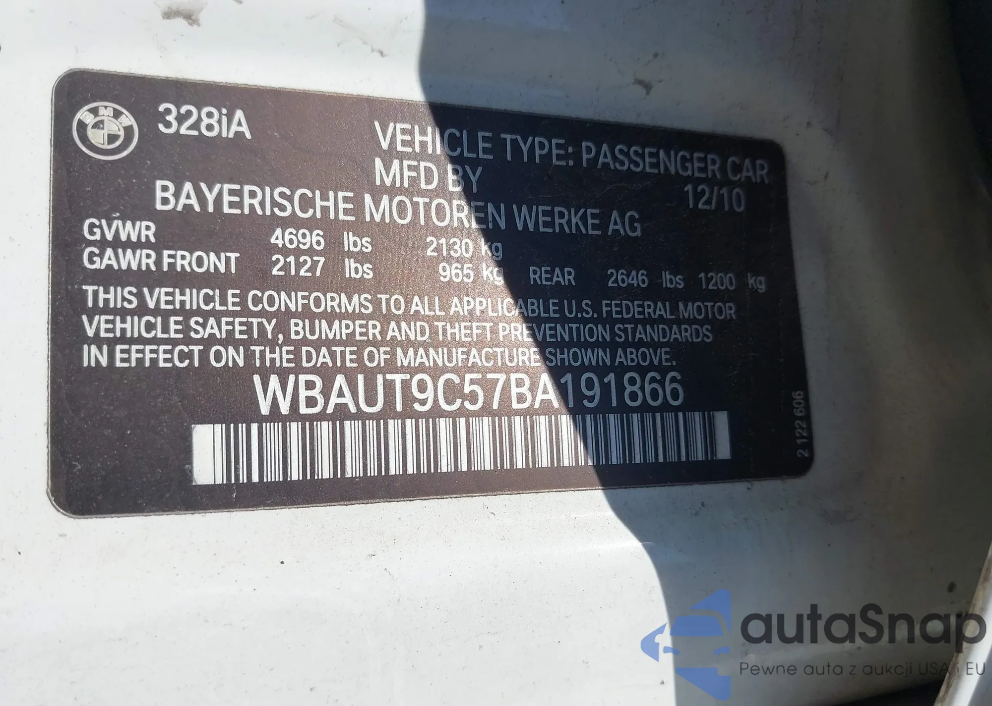 • VIN WBAUT9C57BA191866