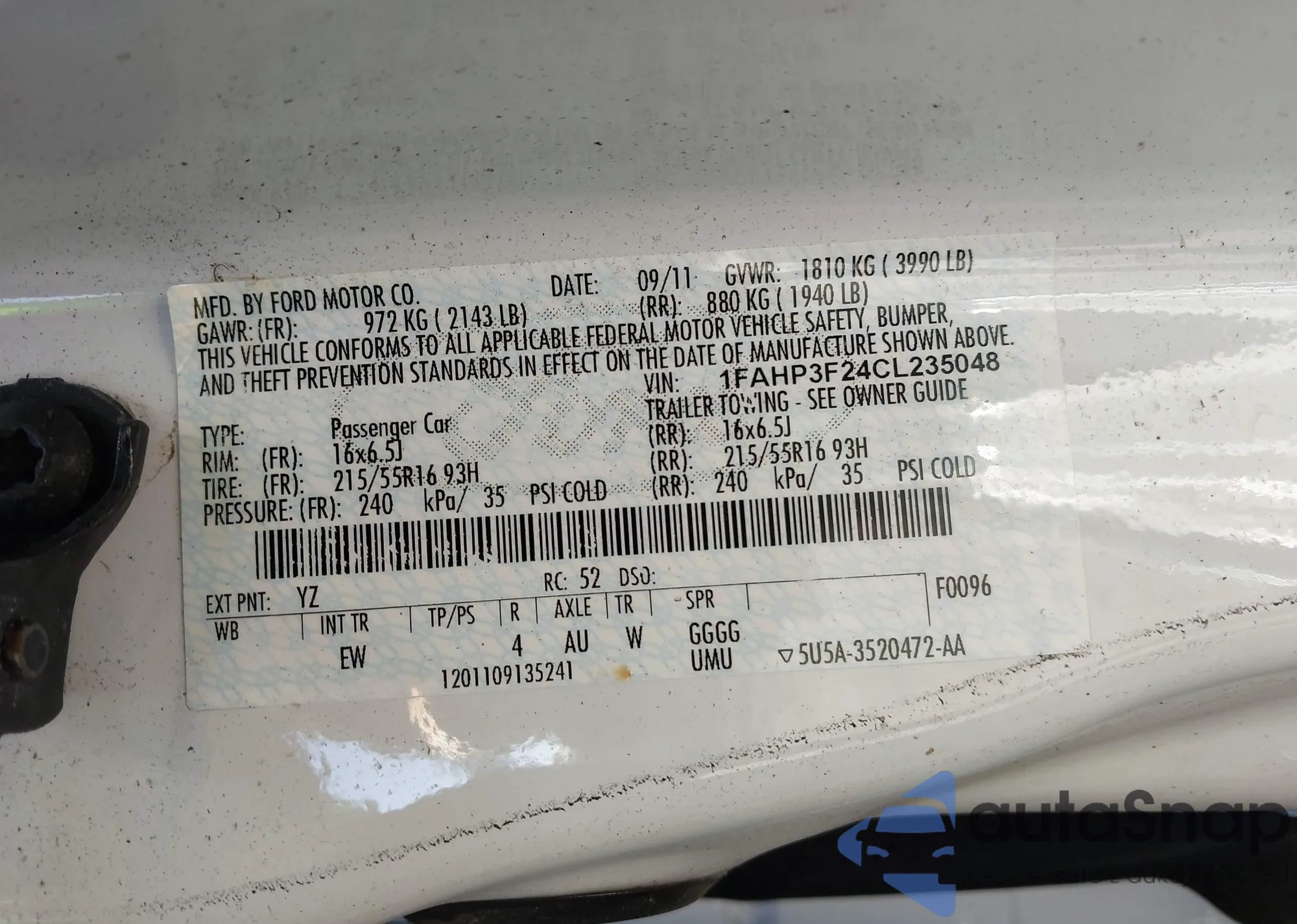 • VIN 1FAHP3F24CL235048