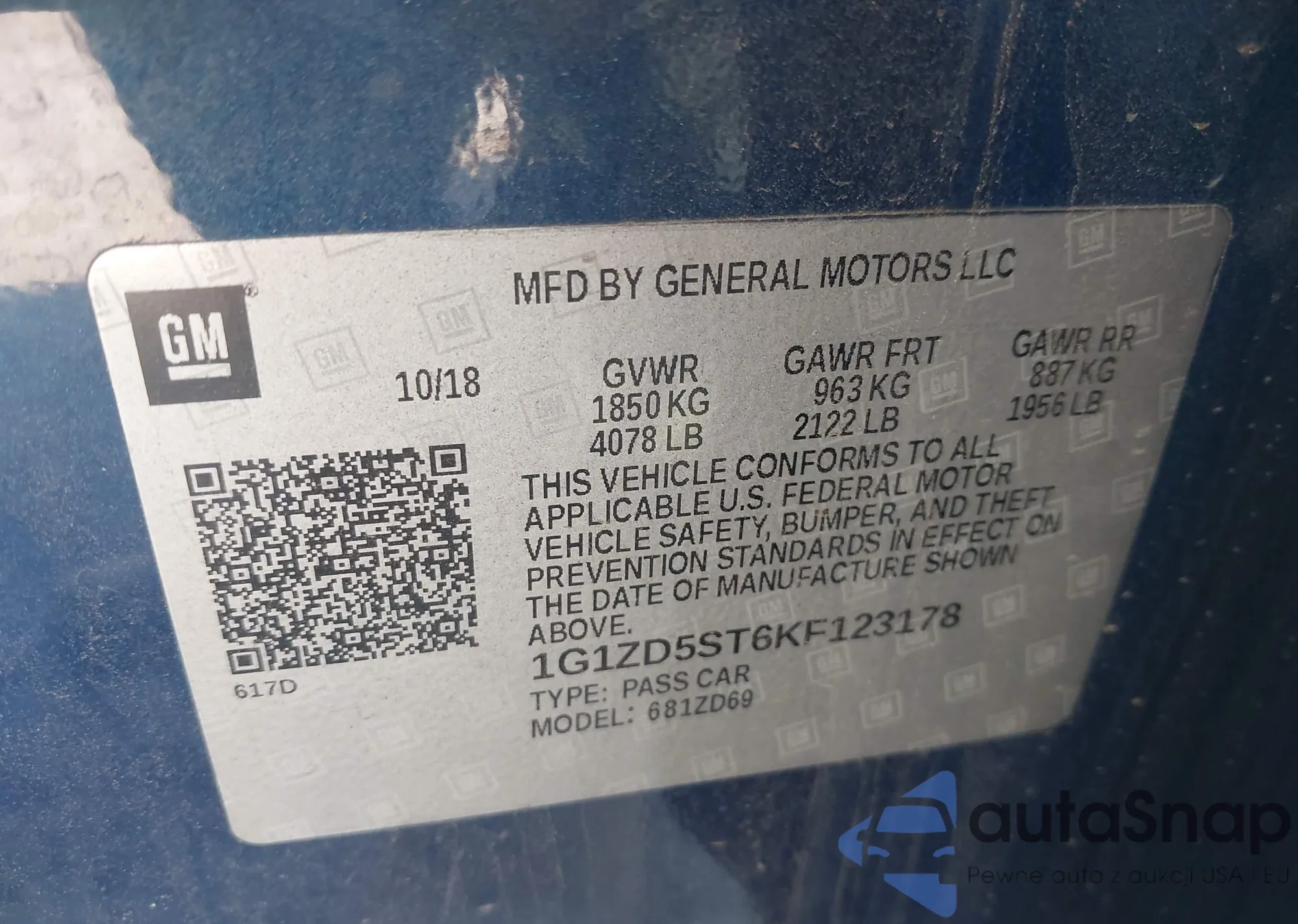LOT: 43236197 VIN: 1G1ZD5ST6KF123178